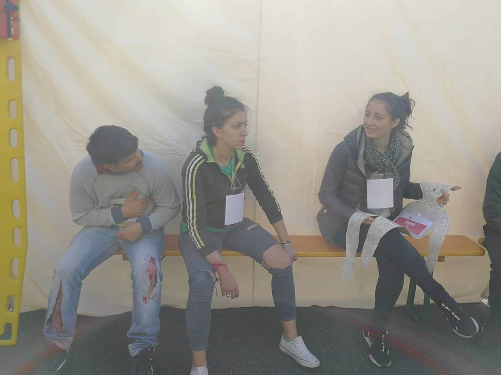 Se avessimo dei casi che richiedono un ulteriore livello di specialità che come ospedale da campo non possiamo affrontare, abbiamo un ufficiale di collegamento del 118 presente nella nostra tenda di triage, che simulando chiama la centrale e coordina il trasferimento del paziente.