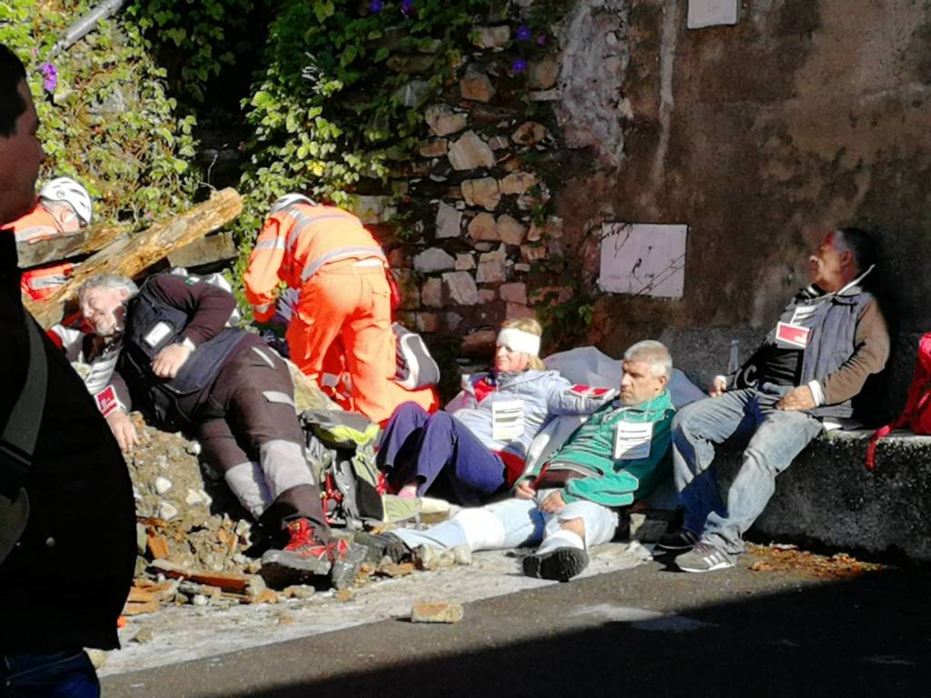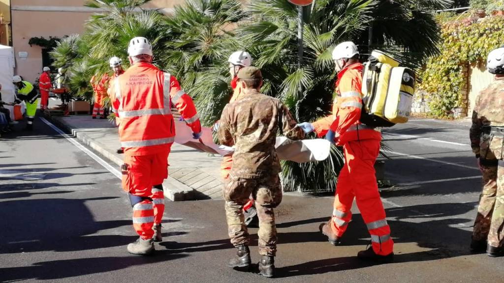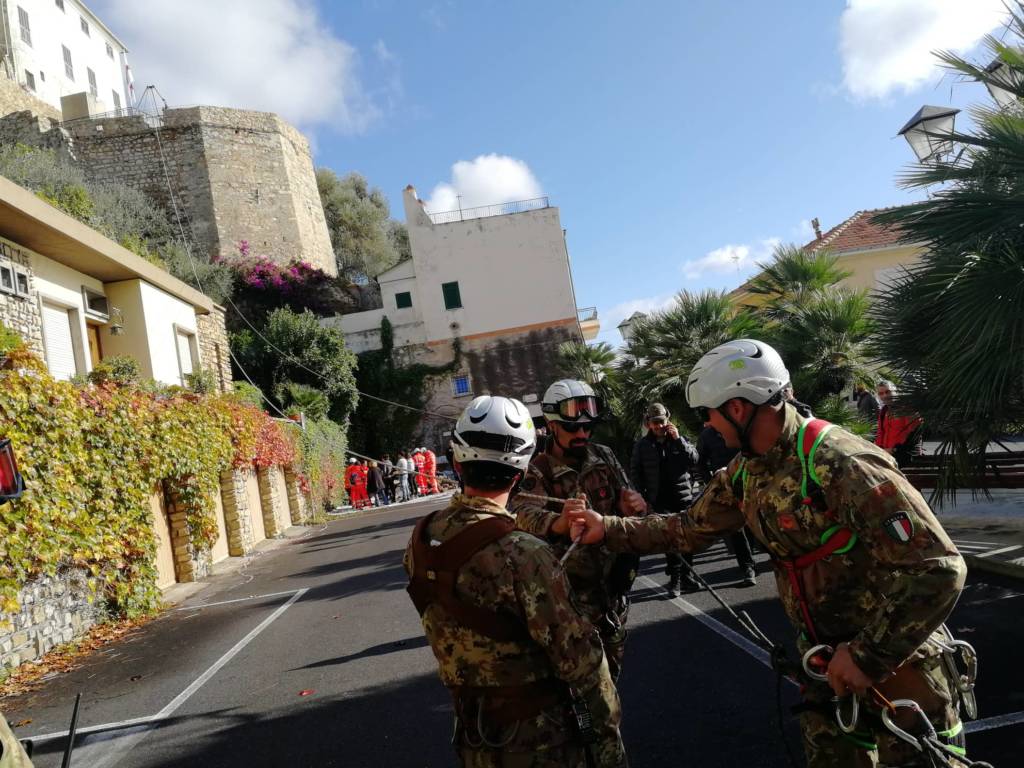 Lo scenario descritto dall’esercitazione militare anti-calamità che si è svolta a Cervo, ha visto la parte alta del piccolo borgo colpito da una frana a causa delle forti piogge dei giorni scorsi, provocando moltissimi feriti.