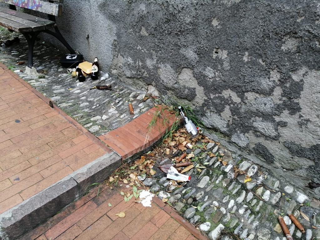 Notte e giorno le panchine sono frequentate da giovani e meno giovani che bivaccano, bevono e fumano, lasciando poi a terra tutto, comprese bottiglie di vetro rotte, pericolose per bambini e animali, senza contare l’inquinamento che ne deriva.
