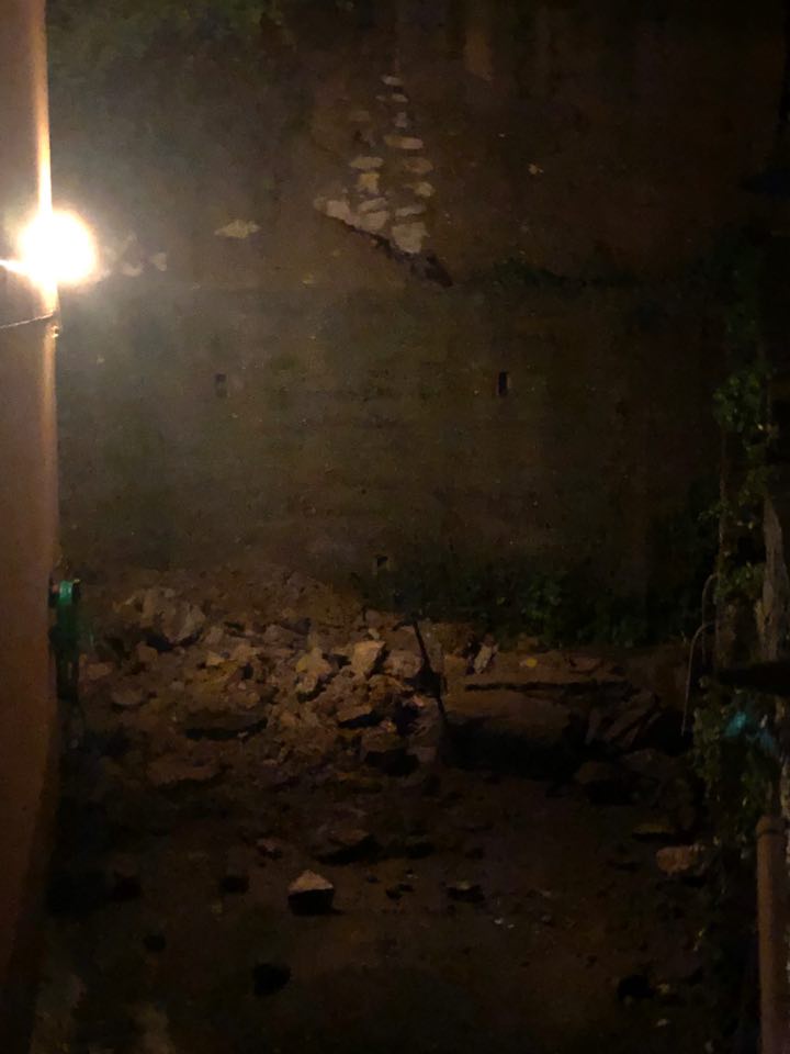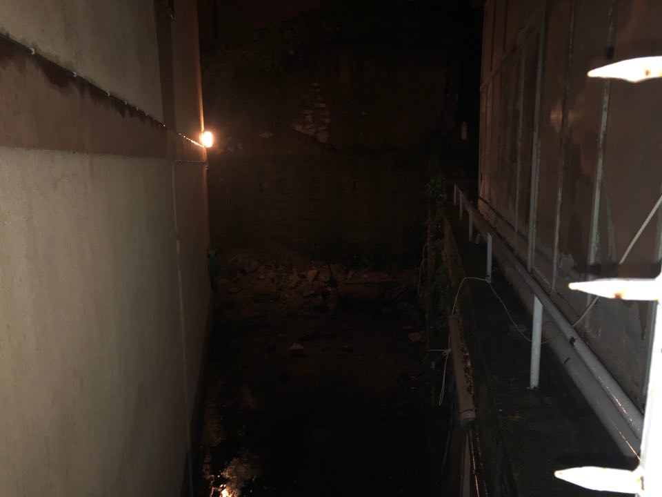 Il muro è crollato probabilmente a causa delle intense piogge delle ultime ore.