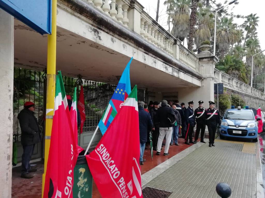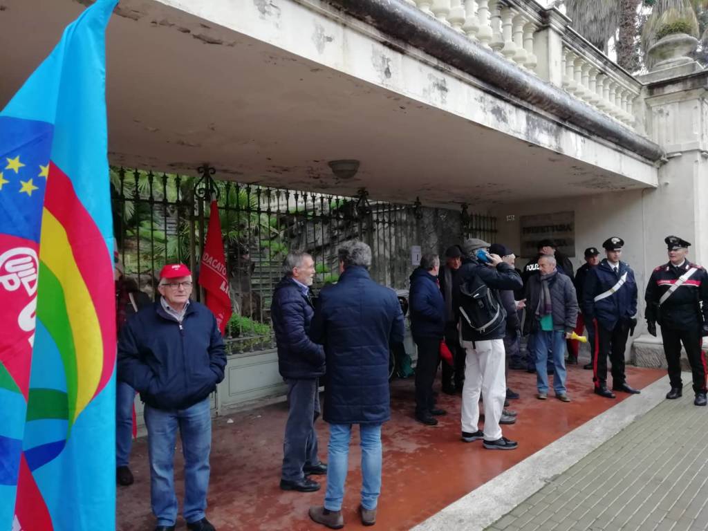 I sindacati hanno messo in atto il sit in, distribuendo volantini per spiegare le ragioni della mobilitazione, prima di incontrare il Prefetto Alberto Intini, cui hanno consegnato un documento contenente le richieste da inoltrare al Governo.