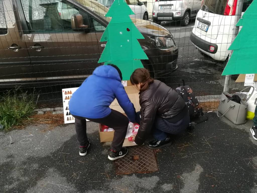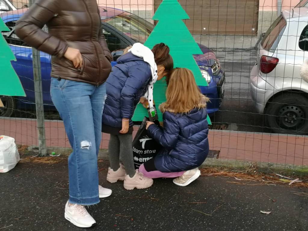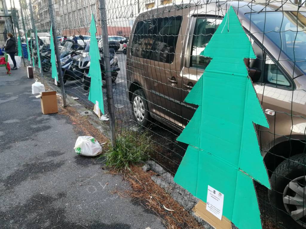 Ogni albero corrisponde ad una attività commerciale del quartiere delle Ferriere, che in questi giorni ci ha fornito del materiale di riuso e che i bambini dovranno usare in maniera fantasiosa per addobbare l’albero.