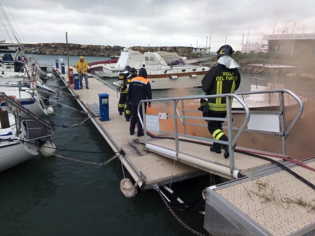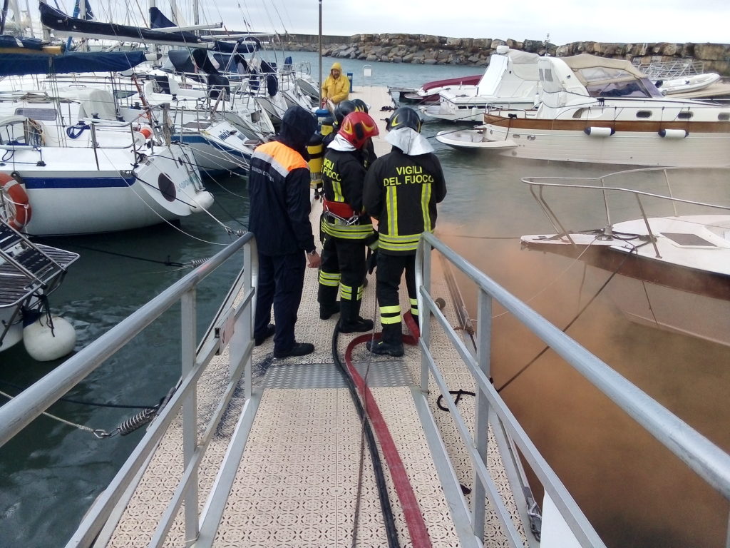 Lo scenario ipotizzato ha previsto un lieve incendio a bordo di un natante da diporto, ormeggiata presso la radice del pontile denominato “D” lato di ponente, a causa di un probabile cortocircuito nella plancia di comando. L’ unità si trovava priva di persone a bordo in quanto fuggite ai primi sentori di fumo.
