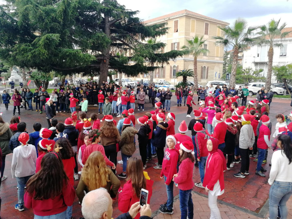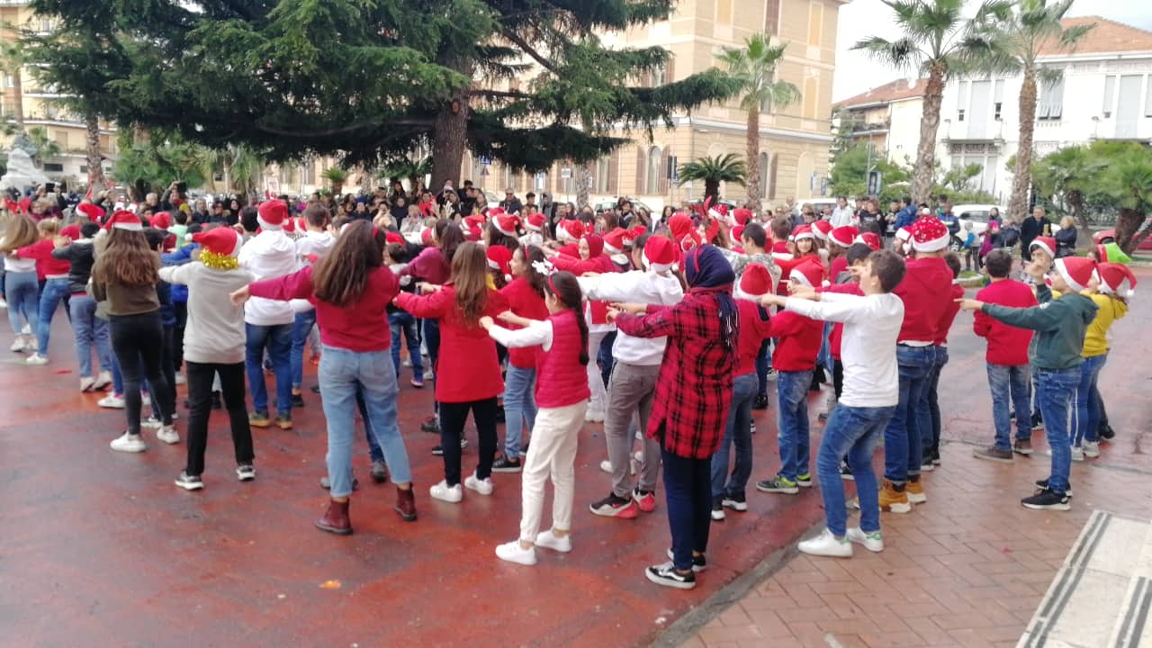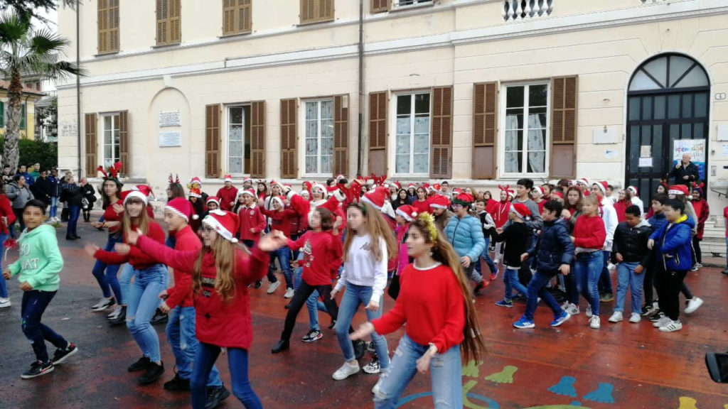 Grande festa questa mattina in Piazza Roma, a Porto Maurizio, per il flash mob natalizio degli alunni della scuola secondaria di primo grado “Boine“. I numerosissimi bambini presenti hanno eseguito un balletto sulle note di “All I want for Christmas is you” di Mariah Carey.