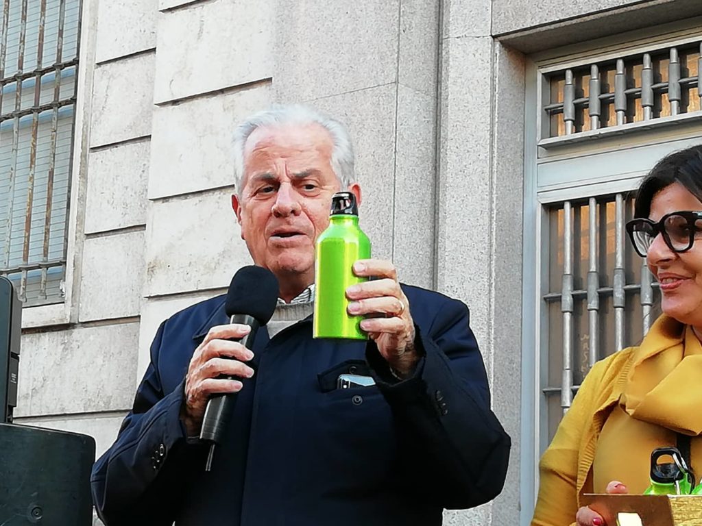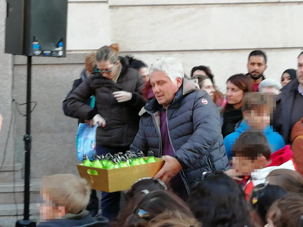 “Abbiamo pensato, come del resto è ormai d’uso, insegnare ai bambini, attraverso questo dono di natale, a non utilizzare più la plastica ma riempire l’acqua a casa, nella borraccia. Questo per evitare l’utilizzo inutile di plastica”.