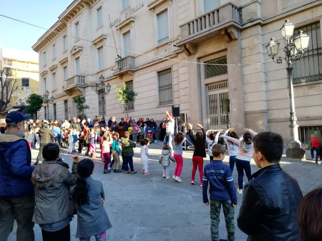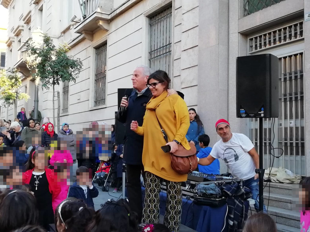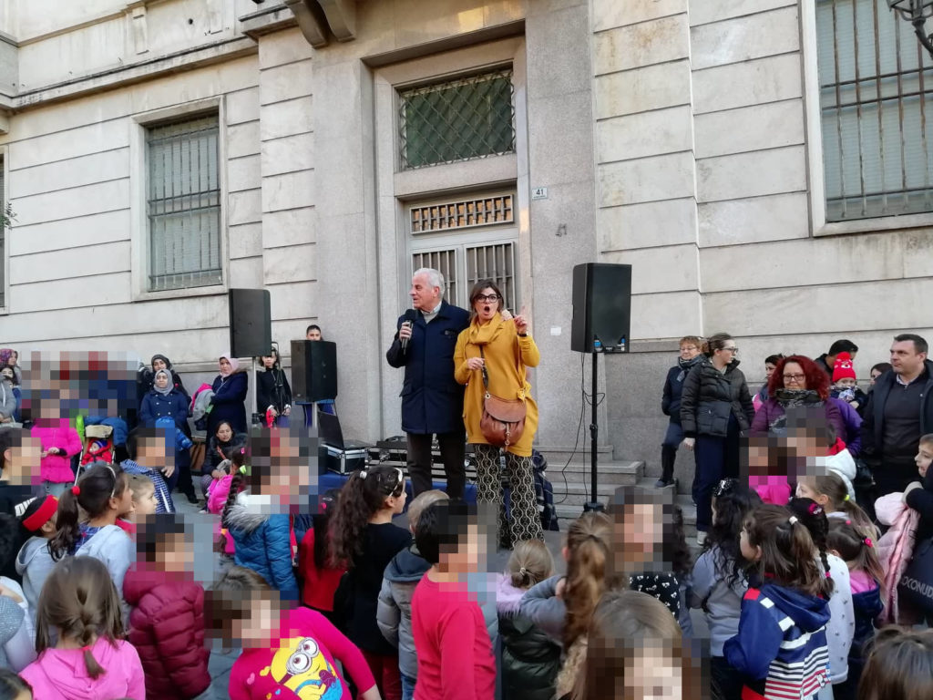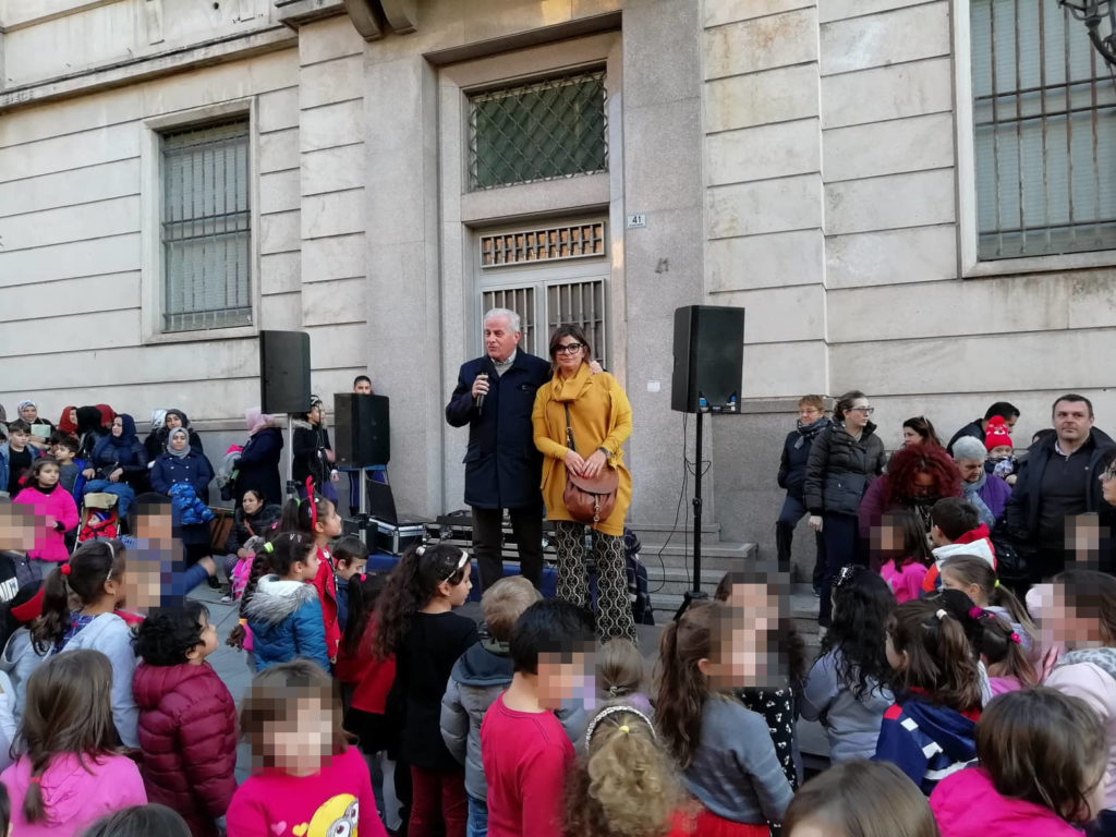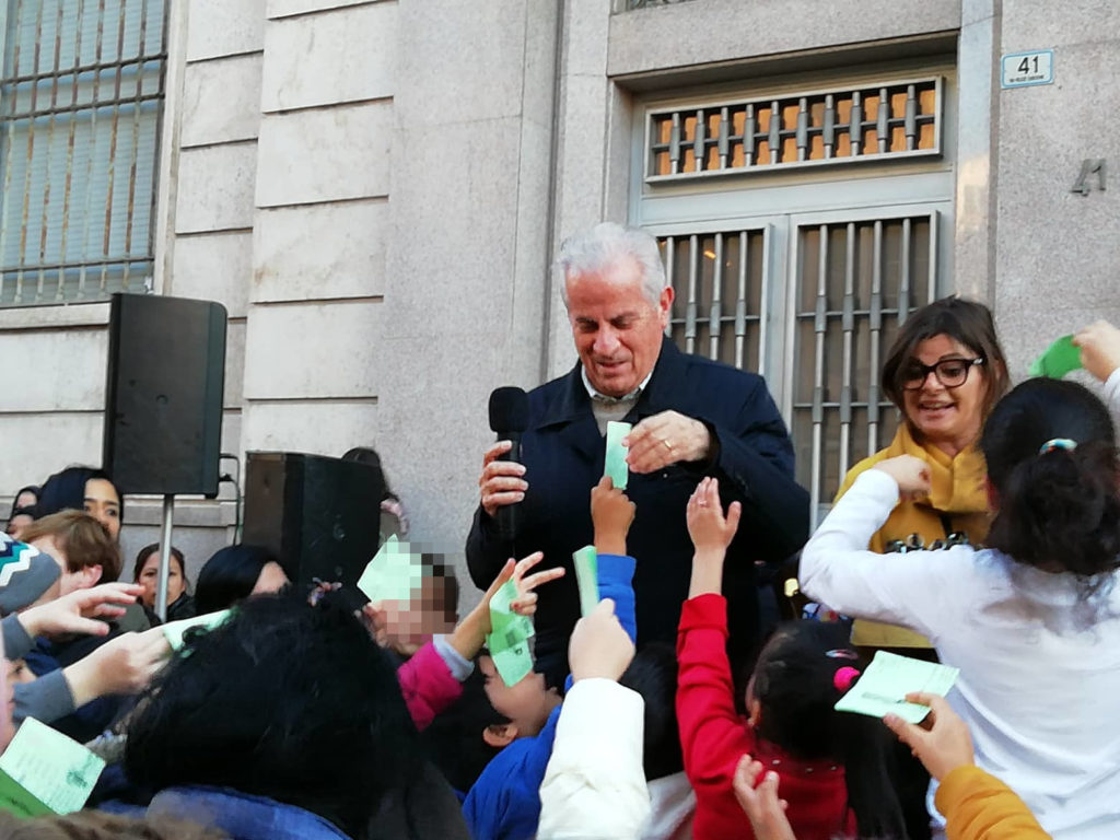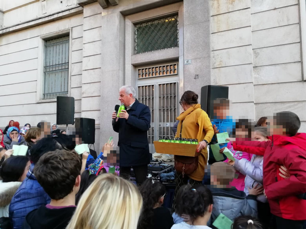 In via Cascione la consegna delle borracce ai bambini delle scuole