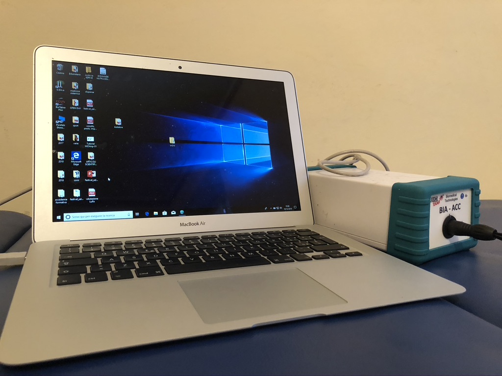 - il bioimpedenziometro, che permette la valutazione della composizione corporea in termini di massa magra e massa grassa, stato di idratazione e livelli dei minerali dell’organismo,