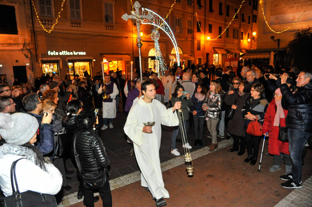 La reliquia consiste in un guanto di lana utilizzato da Padre Pio per coprire le stigmate. L’iniziativa è stata fortemente voluta dal parroco, Monsignor Ennio Bezzone, che già lo scorso gennaio fece arrivare a Imperia una reliquia di San Giovanni Paolo II.