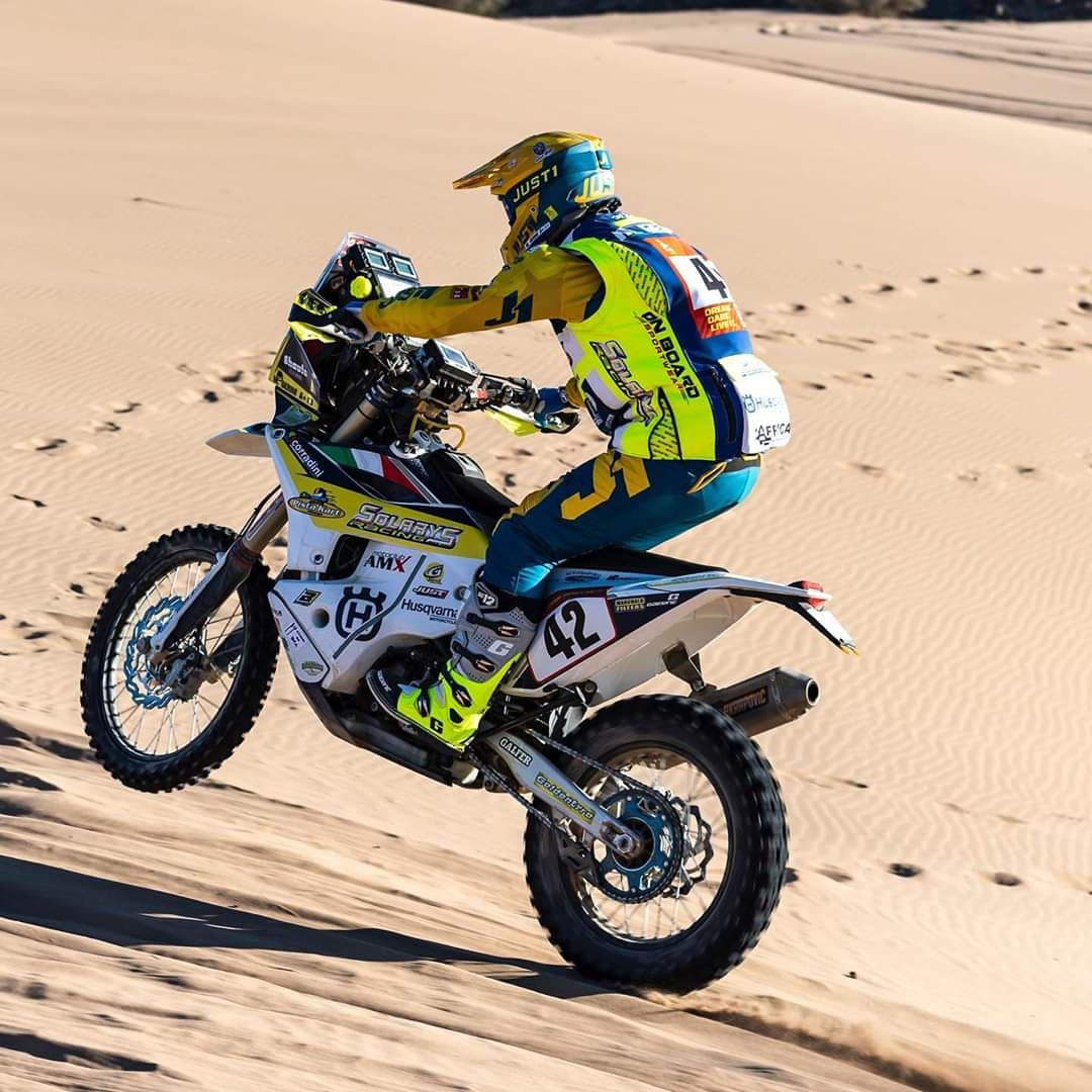 Nella categoria moto citiamo sicuramente Jacopo Cerutti del Team Solarys che col numero 41 alla guida della sua Husqvarna FR 450 Rally ha ottenuto il 23° posto assoluto, concludendo la tappa 3h45’15”, primo tra gli italiani. Segue l’altro pilota del Team Solarys Maurizio Gerini (imperiese), col numero 42, che conclude questo primo stage al 29° posto in 3h53”14”.