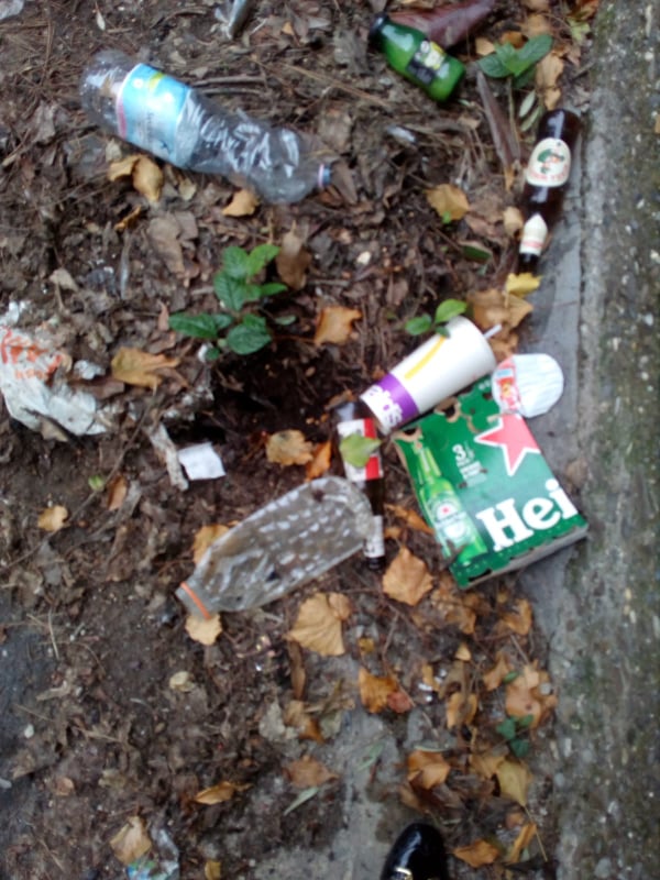 Rifiuti di ogni genere e questo è solo quello che resta, lasciato da un folto gruppo di ragazzi che ad ogni ora del giorno e della notte, staziona in questo luogo, bevendo, fumando, facendosi delle canne, o altro ascoltando musica a tutto volume, sotto gli occhi di tutti, ma ben consapevoli che tutto gli è permesso.