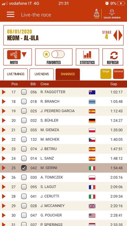 “Freddo alla mattina ma poi ci si scalda per bene durante la speciale – Dice Gerini – Domani è ancora rock’n’roll con 560 km e le prime vere dune”.