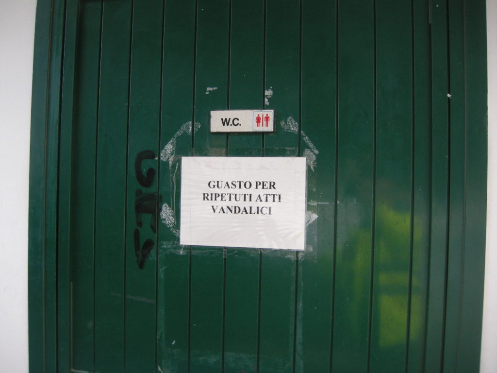 Uno dei due bagni del servizio igienico pubblico situato sul Lungomare delle Nazioni in adiacenza ai giardini pubblici “Marco Polo”, a San Bartolomeo al Mare, è chiuso e lo rimarrà per alcuni giorni. L’altro è stato riaperto dopo esser stato ripristinato e pulito. Entrambi sono stati oggetto di atti di vandalismo nello scorso fine settimana.