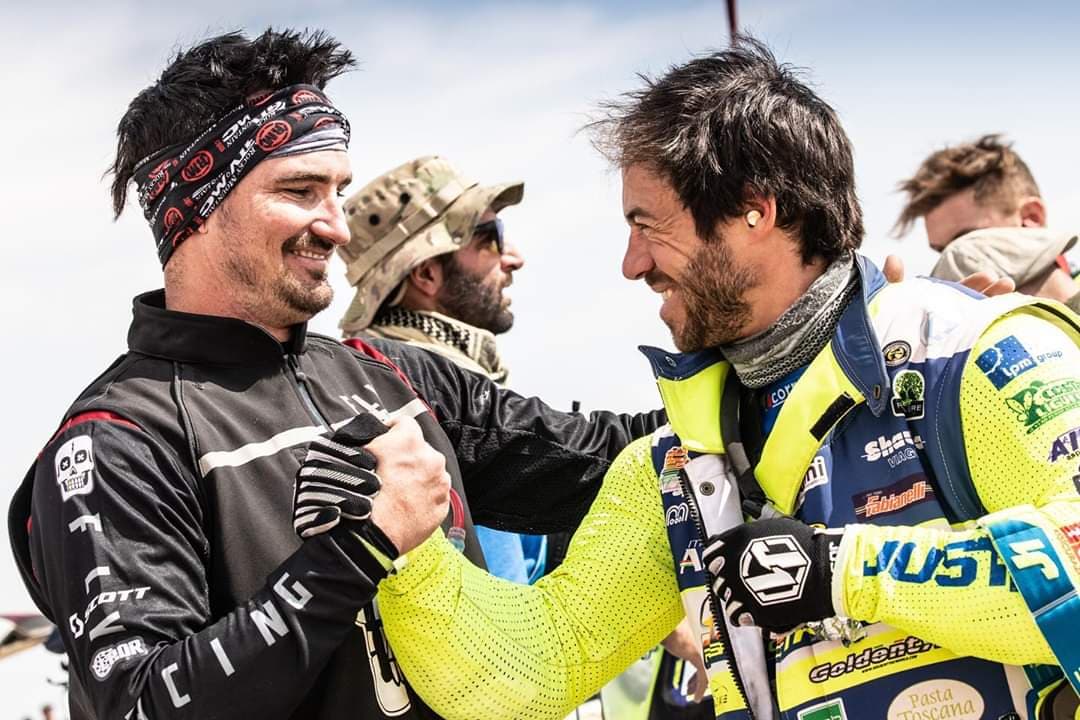 Invece ecco che si ferma lui! Skyler Howes che tra l’altro è 9^ nella generale! Così ho provato l’ebrezza di essere trainato a 100km/h! Grazie mille amico! La mia gara è ripartita con una ventina di minuti in più ma comunque felice! Ovviamente poi è stato un piacere aiutare lui che ha avuto problemi meccanici alla sua moto! Questa è la Dakar”