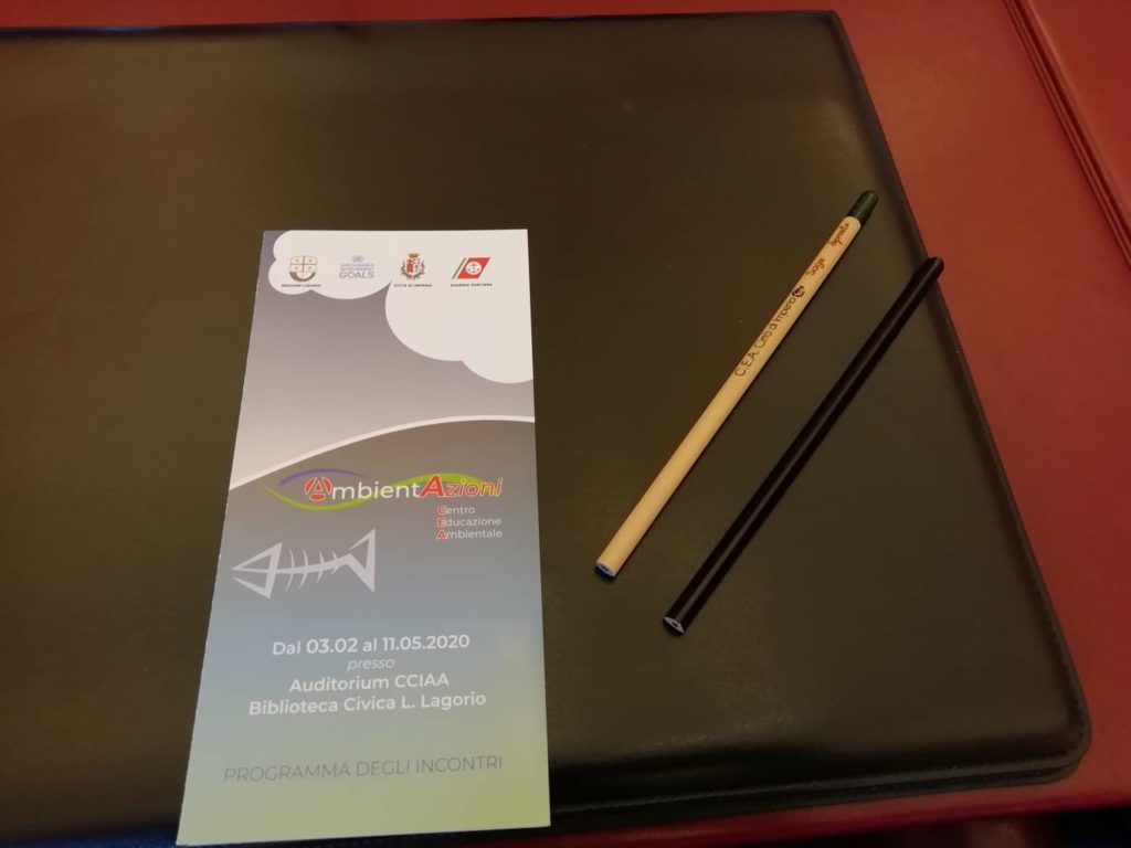 Abbiamo fatto vari gadget, tra cui una matita con i semini e quando finisce si pianta e nasce la salvia, abbiamo dei pieghevoli, stiamo cercando di fare in modo che quando si dice CEA, le persone sappiano cos’è. Il Centro di Educazione Ambientale.