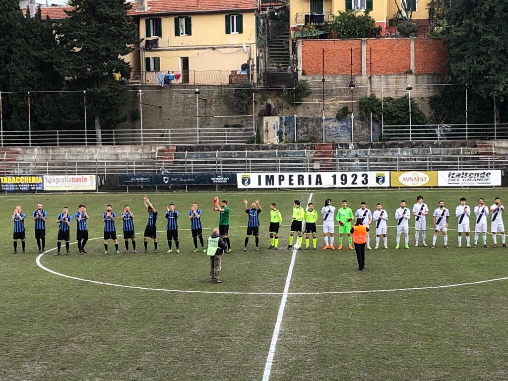 Una partita molto fisica con parecchie ammonizioni e l’espulsione del mister dell’Imperia Lupo quasi allo scadere del tempo regolamentare. Dopo un primo tempo scoppiettante l’inizio di ripresa non ha dato molti spunti fino agli ultimi 10 minuti di gara, oltre ai 5 di recupero, concessi dall’arbitro Rinaldi di Novi Ligure.