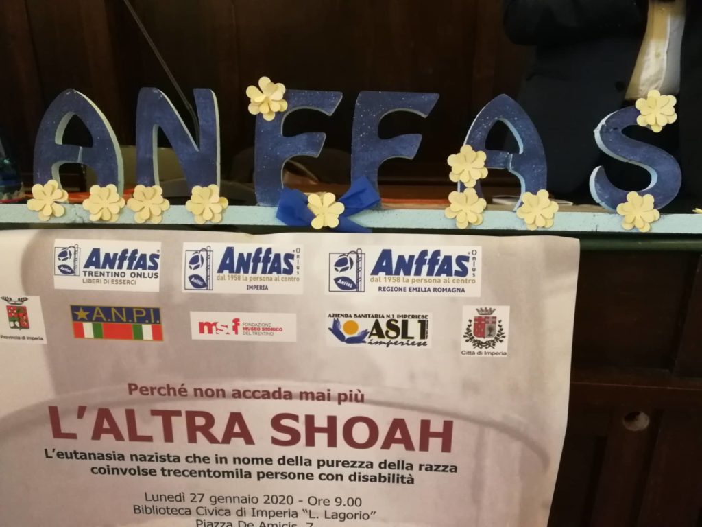 Ha avuto luogo questa mattina, lunedì 27 gennaio in biblioteca a Imperia, il convegno di Anffas in occasione della Giornata della Memoria. L’incontro, dal titolo “L’altra Shoah – Perché non accada mai più”, vuole ricordare le circa 300 mila persone con disabilità uccise per volere di Adolf Hitler.