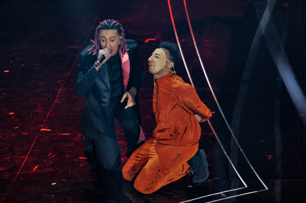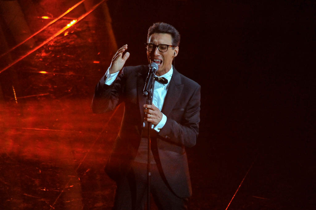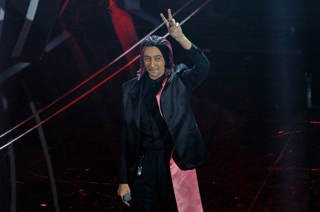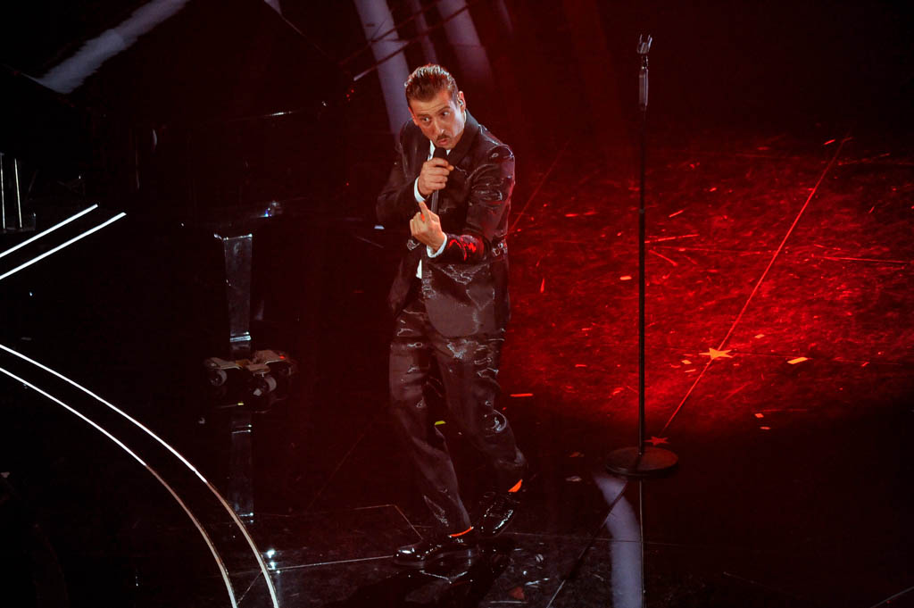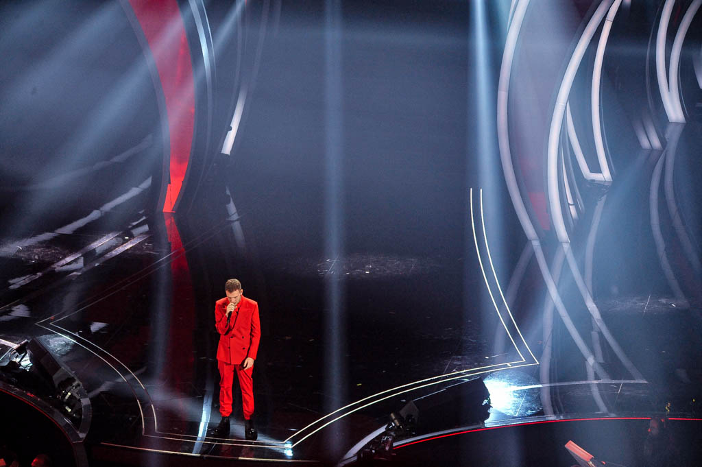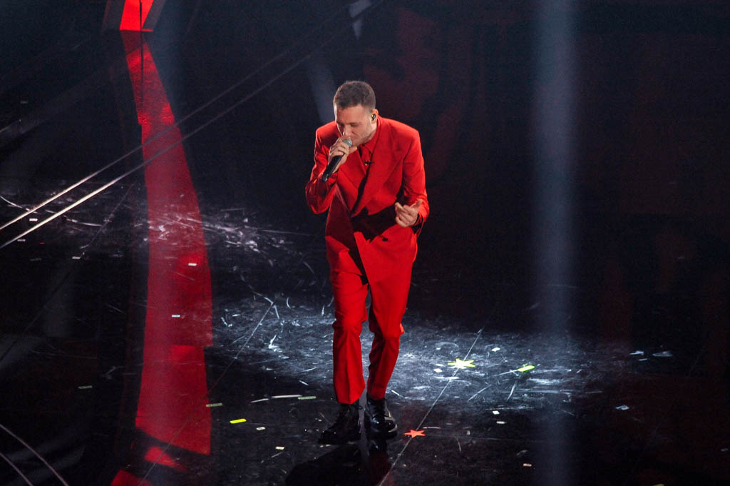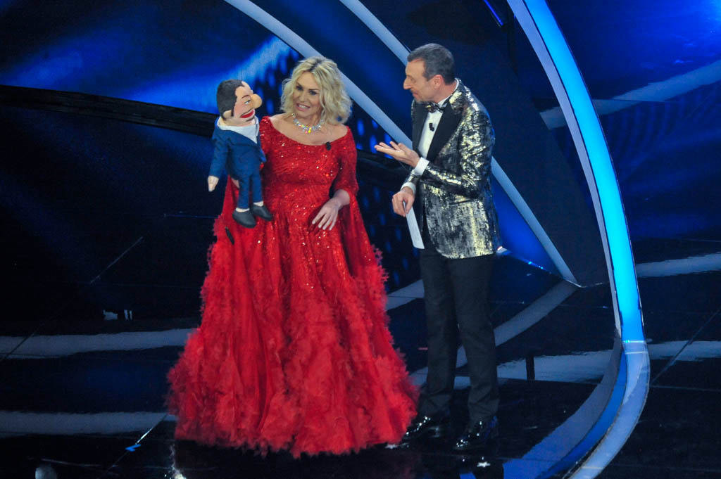 Dopo il pupazzo di Amadeus, mosso dalla Clerici, è stato il turno di Anastasio con “Rosso di Rabbia”, vestito a tema (un completo rosso fuoco).