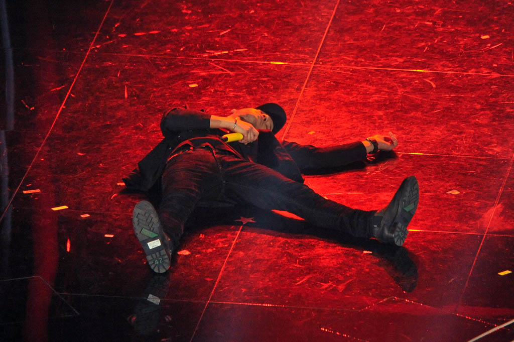 Nonostante i tentativi da parte di Amadeus di riportare la calma, Bugo non ha fatto mai rientro sul palco e l’esibizione è stata interrotta.