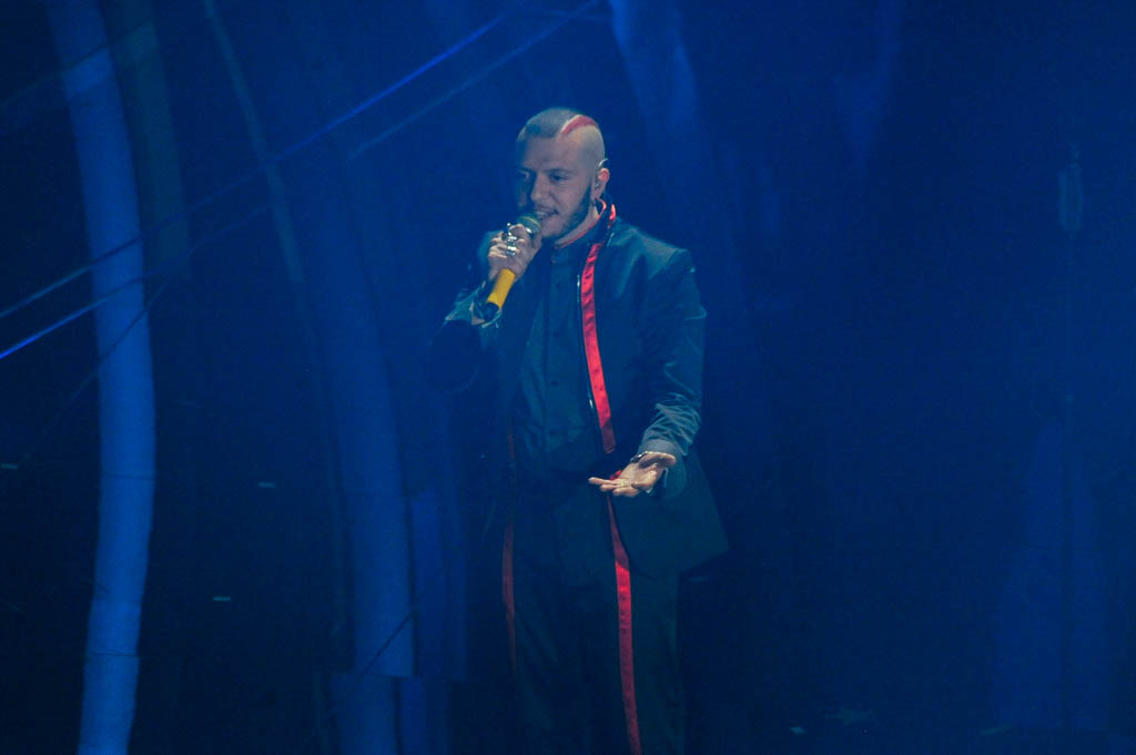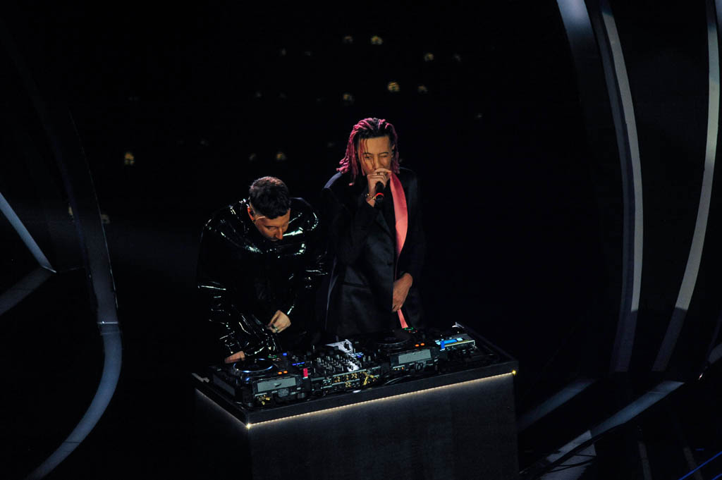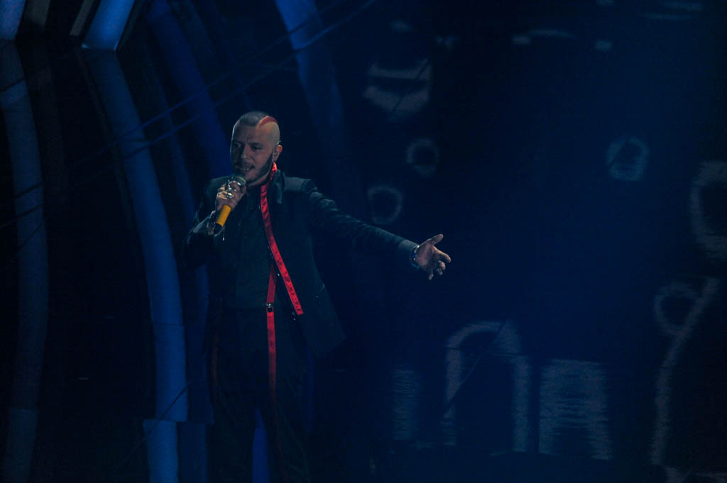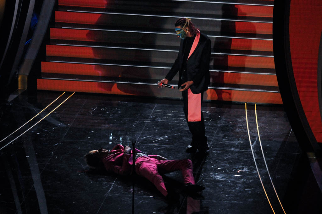 Dopo aver spaventato tutti i presenti per una caduta dalle scale che sembrava vera, Ghali si è esibito con le sue hit e poi ha presentato un suo inedito.