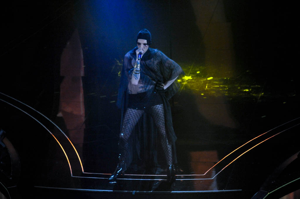 Fischi dal pubblico, ma il festival è il suo. Achille Lauro ha stupito ancora con un costume ispirato alla “Divina Marchesa Luisa Casati Stampa“, come ha spiegato lui stesso poco dopo l’esibizione sui suoi social, e le calze a rete.
