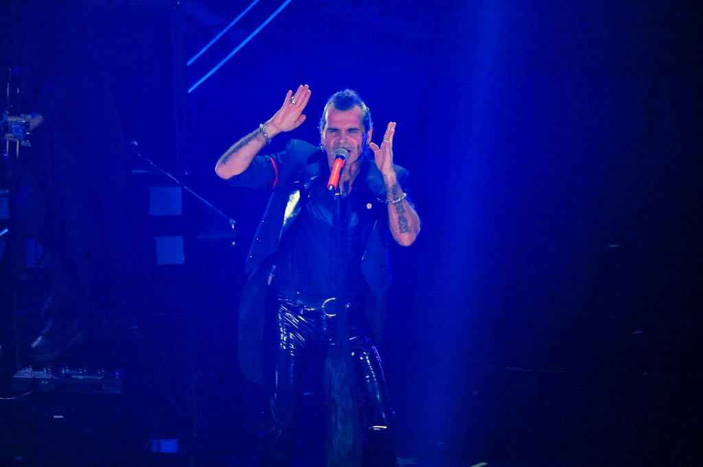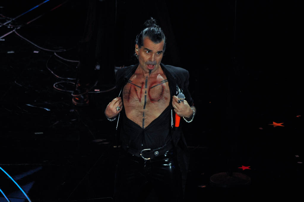 “NO” sul petto di Piero Pelù, alla fine della sua “Gigante”, per lanciare un messaggio contro la violenza sulle donne.
