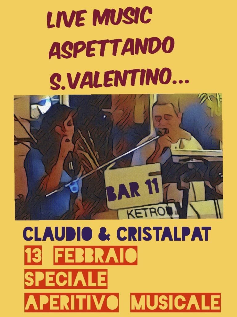 Si inizia domani, giovedì 13 febbraio, con l’aperitivo musicale di “Claudio e CristalPat” a partire dalle ore 18.30.
