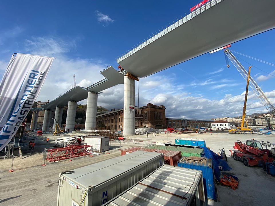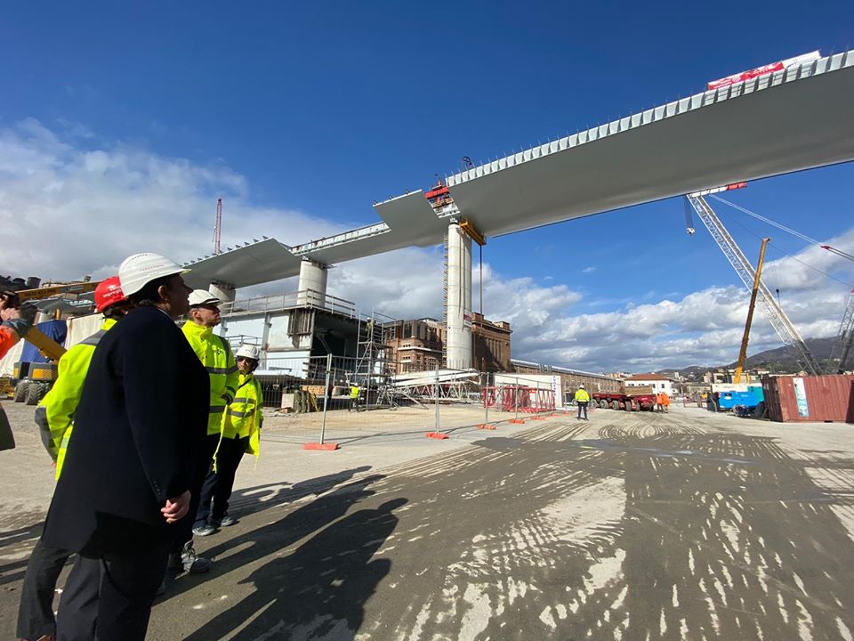 “Un’emozione grandissima: ecco il ponte di Genova prendere forma, più di 500 metri del nuovo viadotto già completato, con l’impalcato da 100 metri che è quasi arrivato in posizione”.