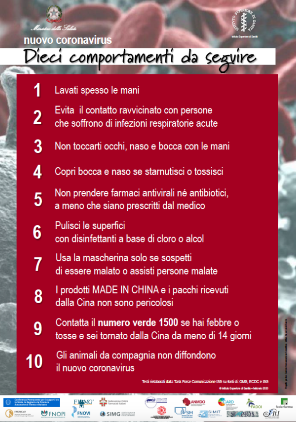 - Contatta il numero verde 1500 se hai febbre o tosse e sei tornato dalla Cina da meno di 14 giorni
