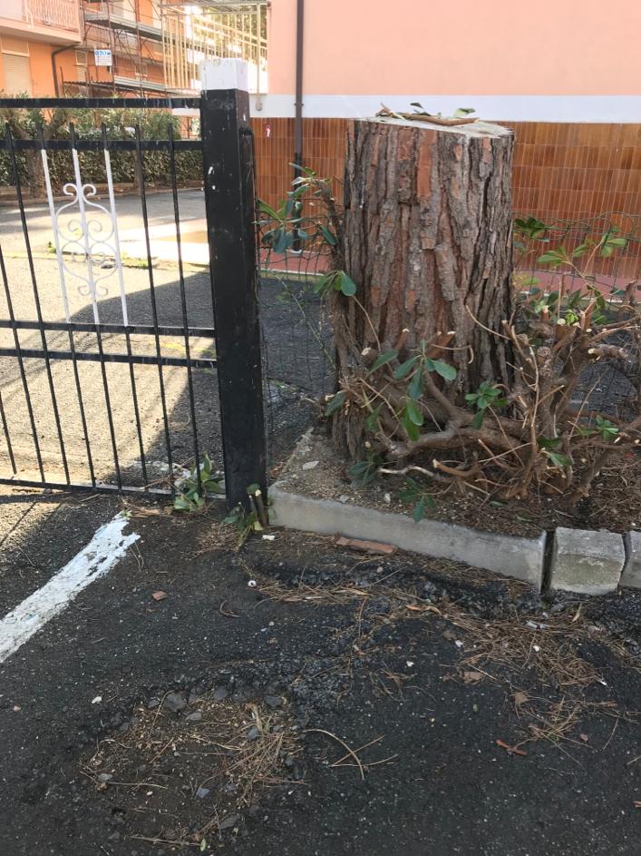 Abbiamo ricevuto diverse raccomandate da parte del Condominio che ci chiedeva di trovare una soluzione, minacciando il ricorso a vie legali, e purtroppo abbiamo dovuto prendere atto che piantare dei pini in un centro abitato non è stata una scelta oculata, anche perché questi pini – che furono messi a dimora sul suolo pubblico dallo stesso Condominio subito dopo la fase finale della costruzione – furono piantati in un’aiuola larga solo 90 cm, per cui col tempo le radici sono fuoriuscite, si sono sviluppate in superficie, hanno creato danni alla piazza che è stata sistemata e riasfaltata più volte”.