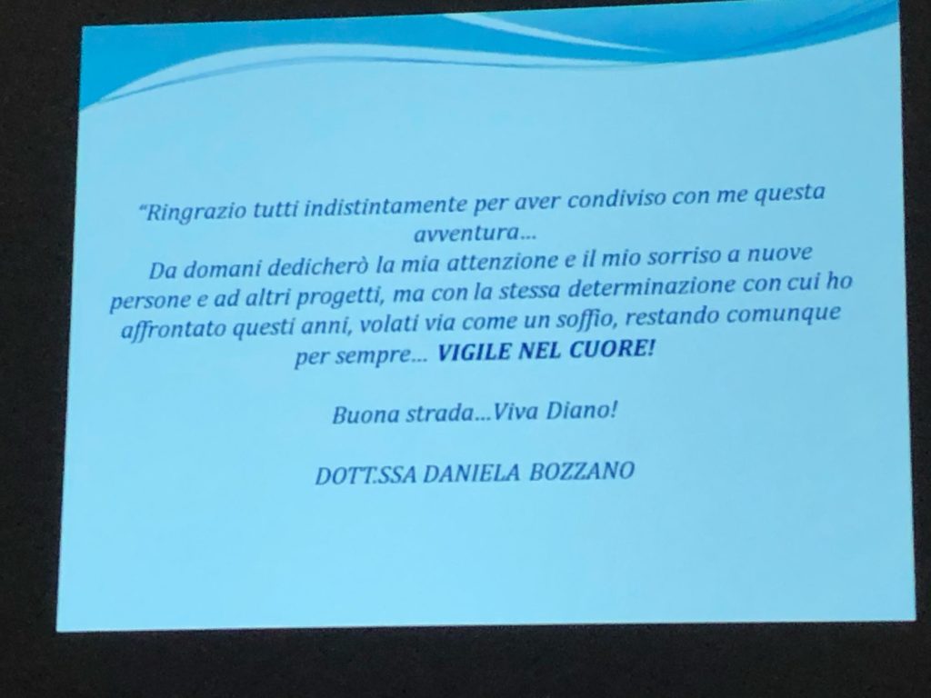 Devo dire che questi 9 anni sono tanti. Un quarto della carriera della Comandante passata con noi e mi sento veramente vecchissimo. Al di la di tutto tutto questo è significativo di quella che è la storia di Diano Marina, vista attraverso gli occhi della Comandante.