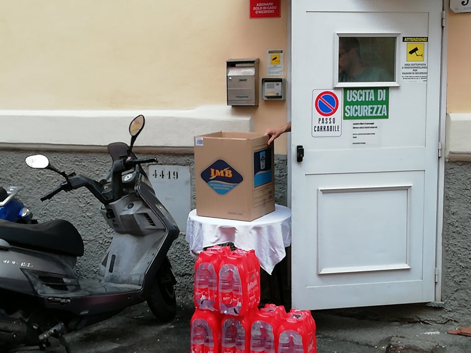 Un piatto caldo, panini e acqua. Questo il pasto consegnato agli ospiti dell’Hotel Paradiso, in quarantena da questa mattina.