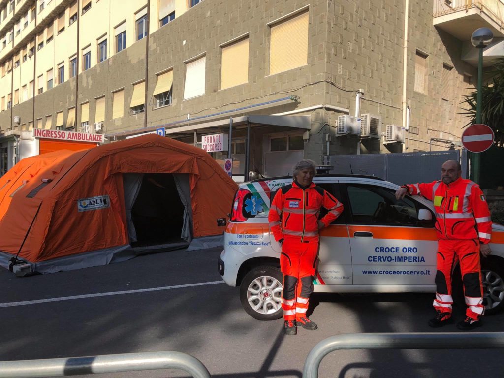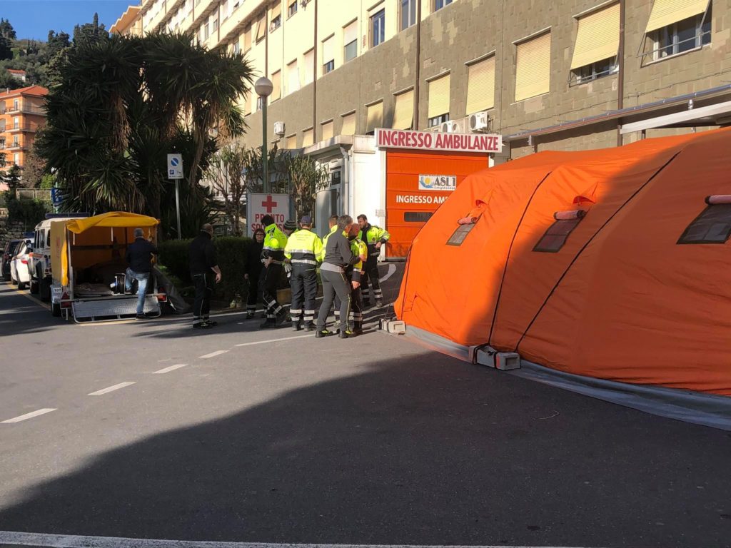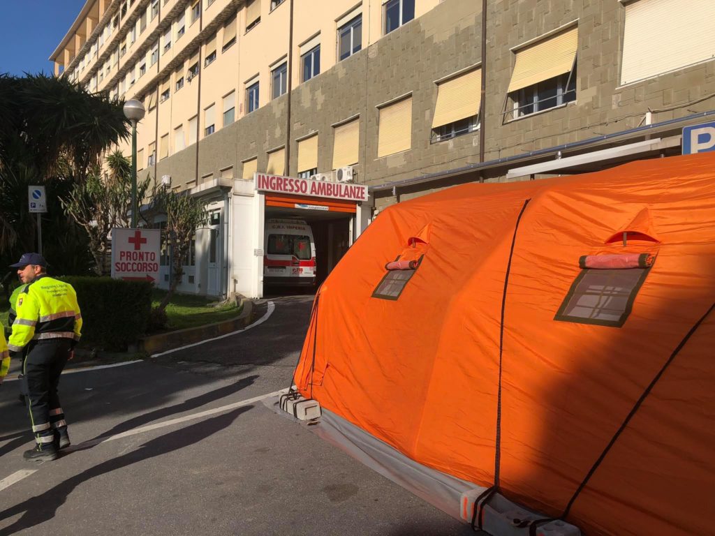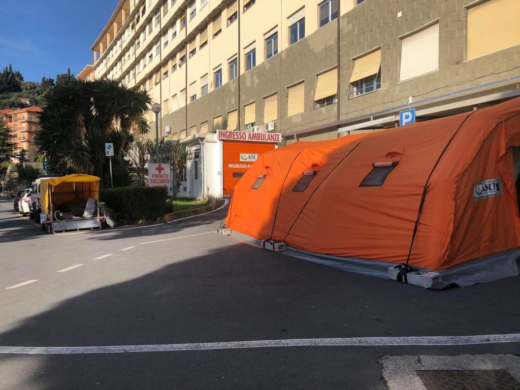 Vista la possibilità di fronteggiare un massiccio afflusso di casi sospetti o confermati sono state predisposte le tende di pre-triage in prossimità dei Pronto Soccorso degli ospedali di Imperia, Sanremo e Bordighera.