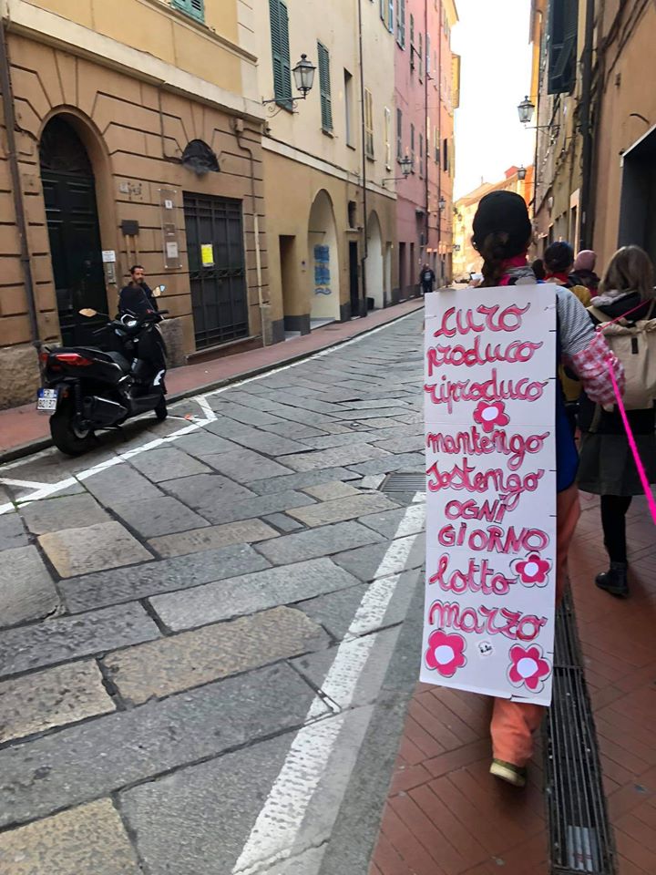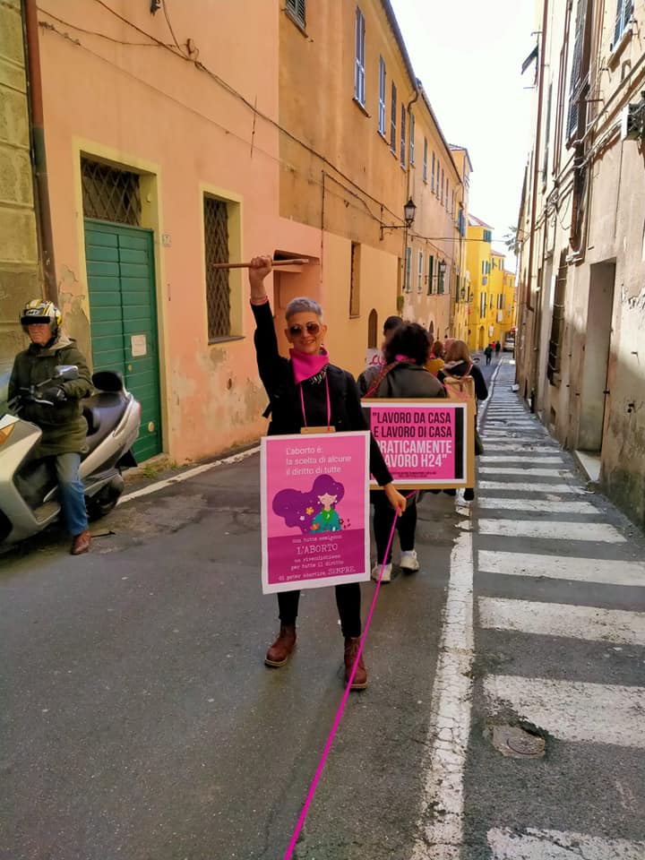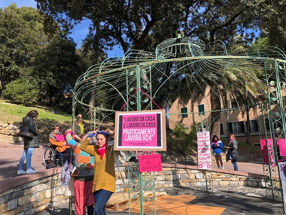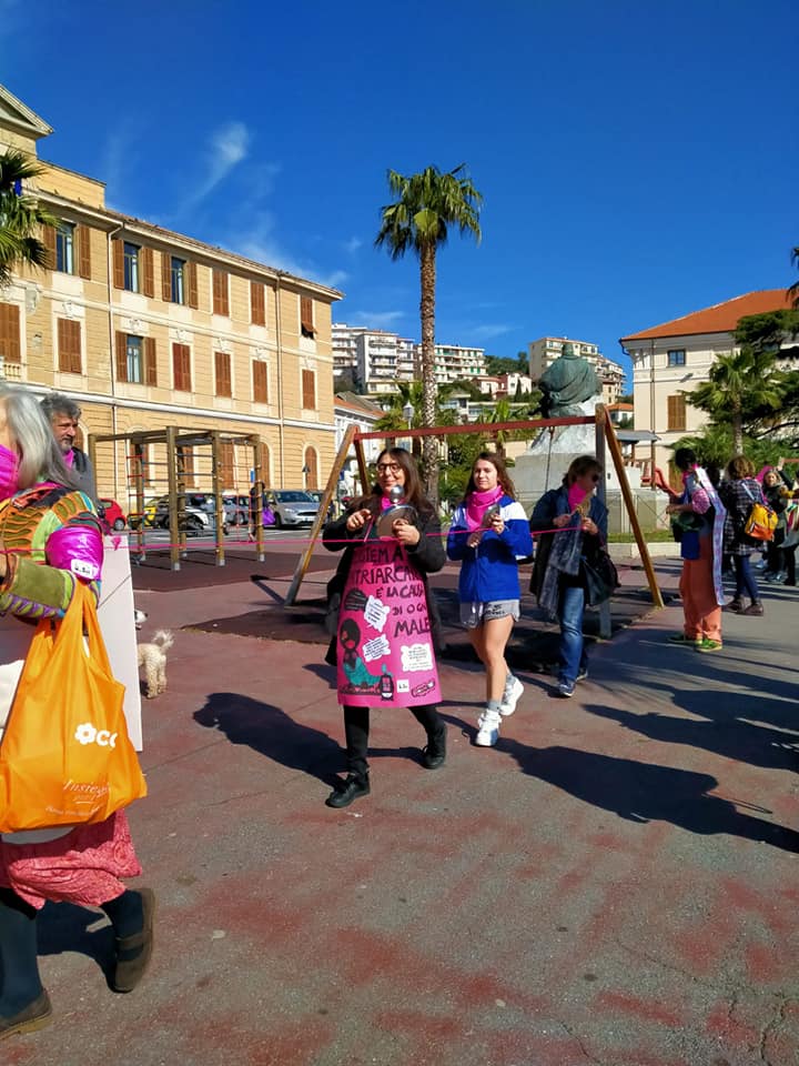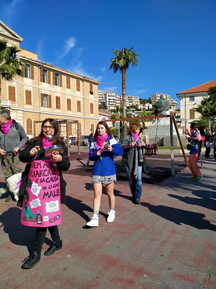 Il coronavirus non ha fermato la passeggiata “irriverente” per ridare la parola alle donne. Ieri, domenica 8 marzo, in occasione della festa delle Donne, Non Una di Meno Ponente Ligure ha realizzato la camminata da piazza Roma ai Giardini Città di Rosario per manifestare in favore della parità di genere.