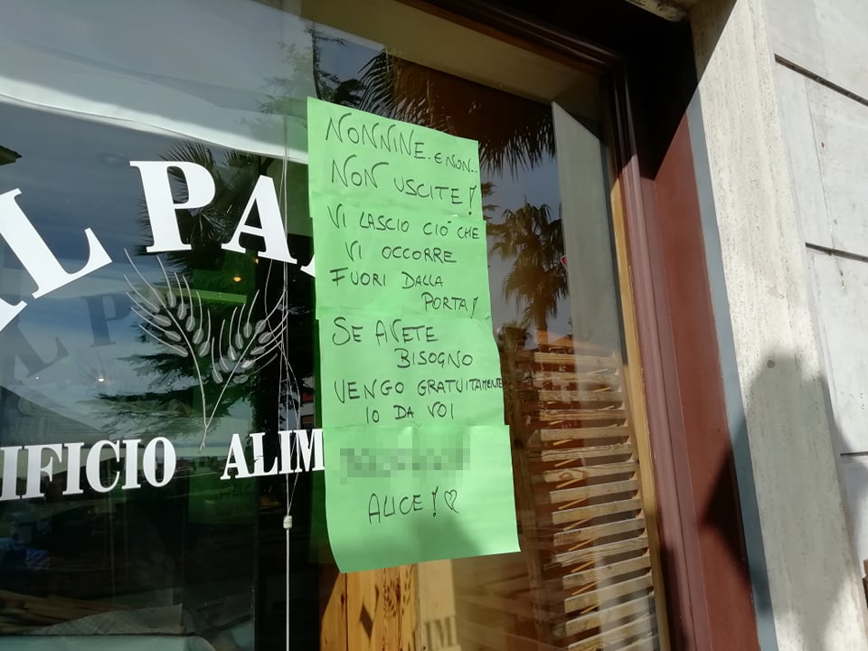 “Nonnine e non. Non uscite. Vi lascio ciò che vi occorre fuori dalla porta. Se avete bisogno vengo gratuitamente io da voi”. L’idea è venuta a Alice, della panetteria “Il Pane” di via XX Settembre a Imperia.