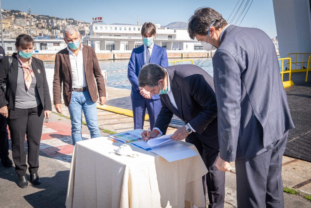 La consegna della nave è avvenuta oggi, nel porto di Genova, alla presenza del Governatore della Regione Liguria, Giovanni Toti, del Sindaco di Genova, Marco Bucci, del Presidente dell’Autorità di Sistema Portuale del Mar Ligure Occidentale, Paolo Emilio Signorini, dell’Amministratore Delegato di GNV, Matteo Catani, dell’Amministratore Delegato del RINA, Ugo Salerno, della Vicepresidente della Regione Liguria e Assessore regionale alla Sanità, Sonia Viale, dell’Assessore regionale alla Protezione Civile, Giacomo Giampedrone, del Direttore Generale della ASL 3, Luigi Carlo Bottaro, e del Direttore del Dipartimento di Emergenza dell’Ospedale Galliera, Paolo Cremonesi. L’iniziativa ha riscontrato l’immediata adesione di numerosi partner, che hanno messo gratuitamente a disposizione prodotti e servizi per dotare la nave di tutti i requisiti necessari, tra i quali HP-Aruba, Alpha Trading, Artigo Rubber Flooring, San Giorgio del Porto, Auscomar, ItalBrokers, Agenzia Marittima Le Navi, Burger King, Covim, Emis, Giunti Editore, IdealService, Infomaster, Mantero Sistemi, Provveditoria Marittima Ligure Angelo Novelli e Studio Tecnico Navale Ansaldo.