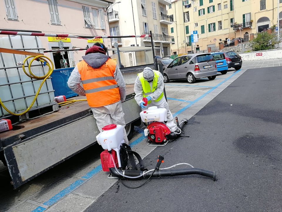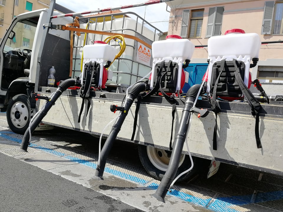 “Siamo a buon punto. Tutte le frazioni circostanti a Imperia sono state sanificate. Ci stiamo concentrando sul centro, Oneglia e Porto Maurizio in particolare – ha spiegato a ImperiaPost Mattia, della Ars Ecologia – Entro la metà della prossima settimana i lavori saranno terminati. Oltre a noi c’è un’altra squadra che gira per i quartieri. Un camion cisterna, con una lancia che sanifica tutti marciapiedi. Usiamo un prodotto iperacetico in polvere, che si diluisce in acqua. Non è tossico e non fa male all’ambiente”.