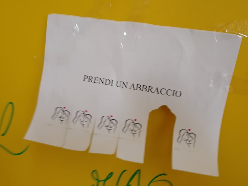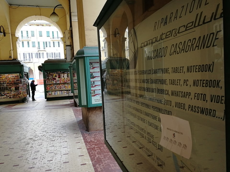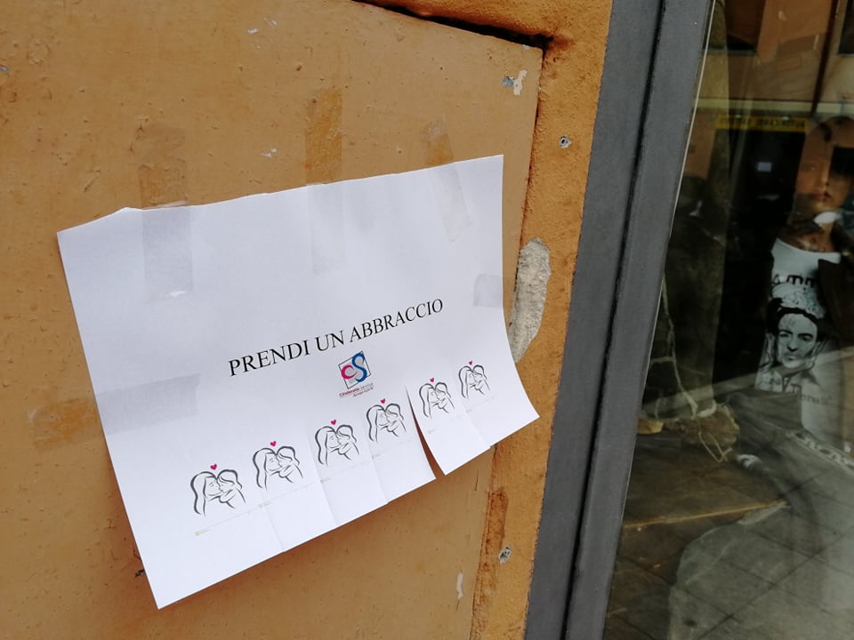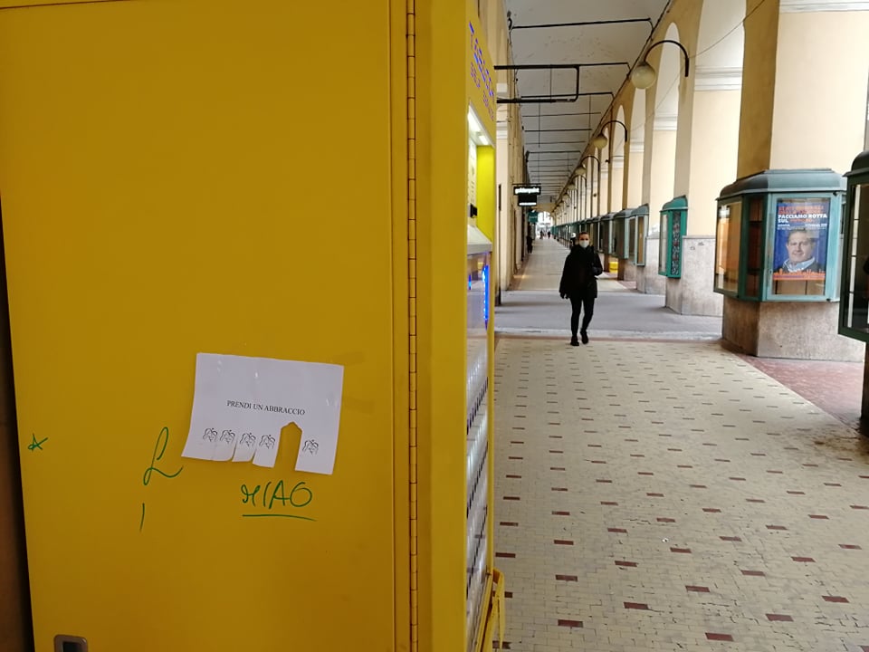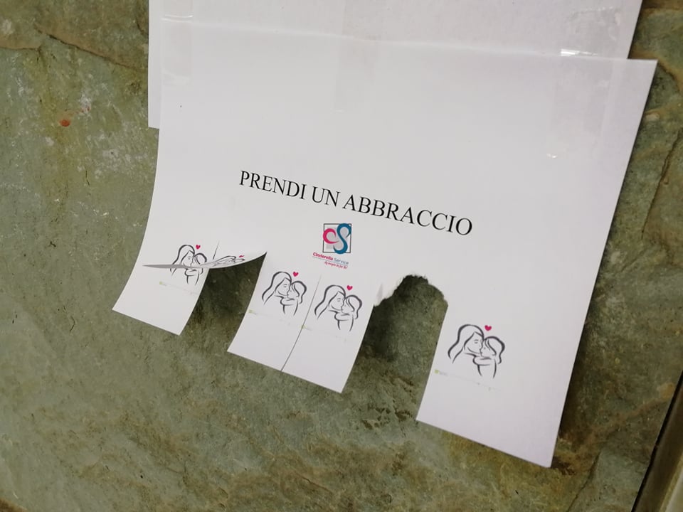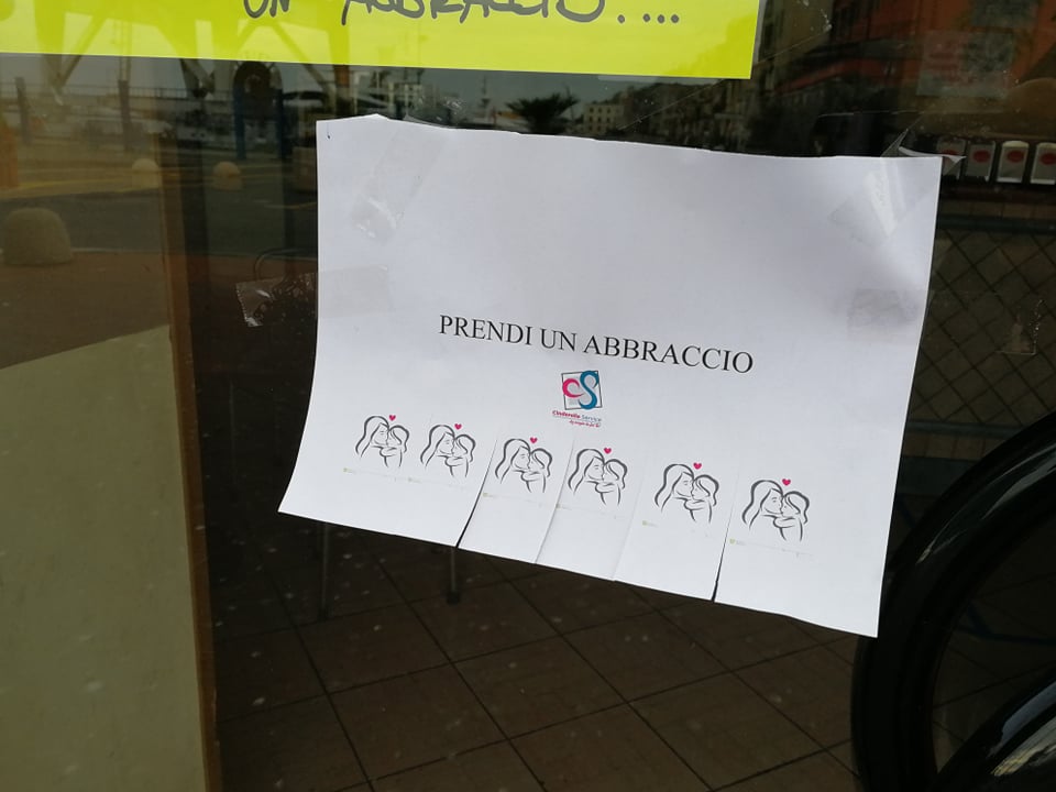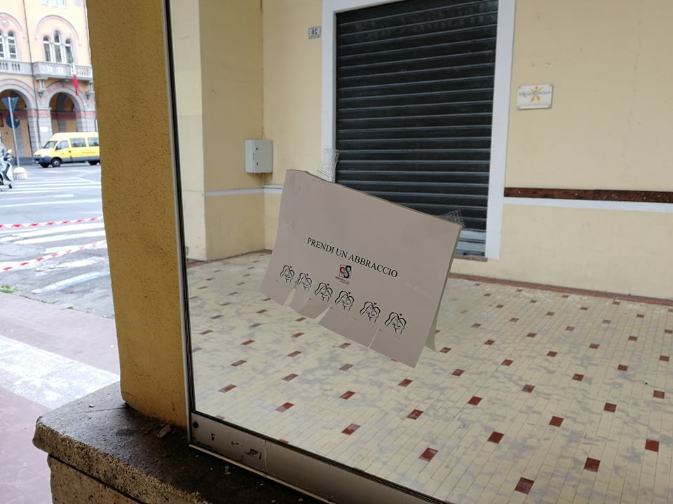 “Prendi un abbraccio”. Da qualche ora, a Imperia, sono comparsi su muri, vetrine, portoni, degli annunci davvero speciali. Tutto nasce da un’idea di Layla Maranta, non nuova a iniziative di questo genere. Nei giorni scorsa aveva lasciato fuori dal proprio negozio kit con guanti e mascherine.