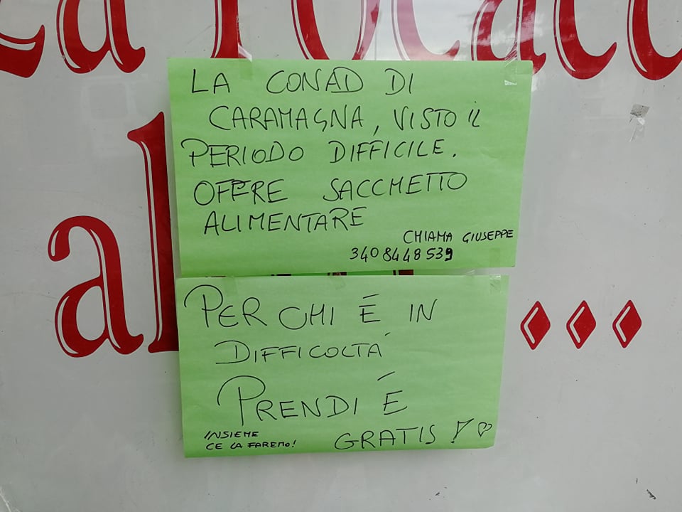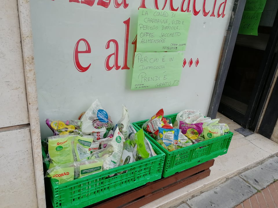 È il Conad che mi mette a disposizione della roba che vuole dare alla gente bisognosa. Se c’è gente che ci chiama , possiamo anche andare a domicilio.”