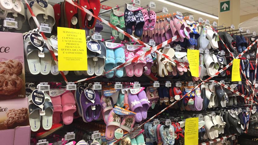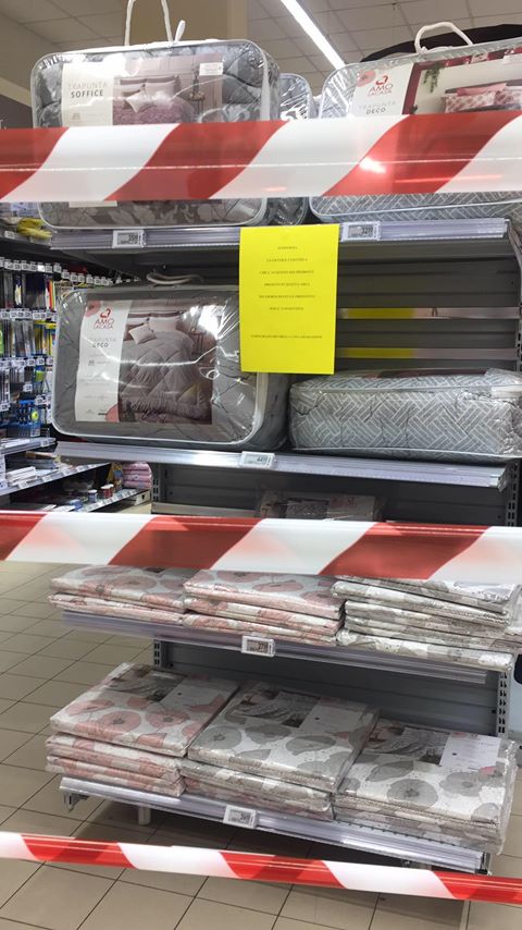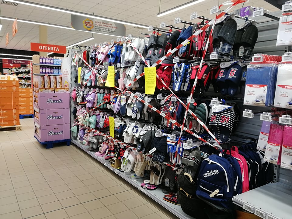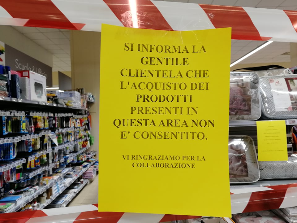 “Vorrei segnalare un fatto accaduto poco fa al Supermercato Conad di Via Airenti – scrive Claudia – E’ stato sbarrato l’accesso ad alcuni reparti del negozio, considerati beni ‘non necessari’. Partendo dal presupposto che tutti i negozi non necessari sono chiusi e che quindi l’unico punto di riferimento per poter reperire beni che non siano solo generi alimentari è un ipermercato, mi sembra assurdo il fatto che siano stati chiusi i reparti che vendono materiale scolastico base (quaderni e penne, utili e obbligatori non solo per i bambini che stanno studiando a casa, ma anche per i lavoratori smartworking e gli studenti elearning), asciugamani, pigiami, biancheria intima, pantofole e, cosa che mi ha lasciato ancora più basita, le coperte.