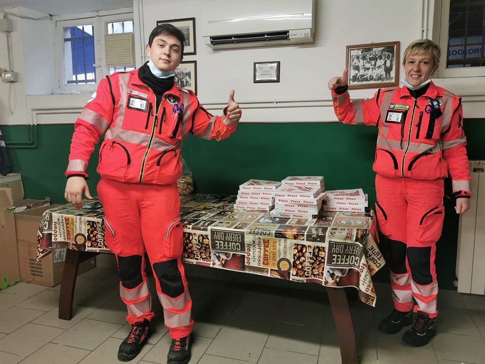 E di sera, c’è la Peyla, il ristorante di via Alfieri, che distribuisce pizze ai medici, gli infermieri e i volontari delle Pubbliche Assistenze, tra cui la Croce Bianca e la Croce Rossa, per offrire loro un pasto caldo nel corso dei loro lunghi e diffili turni.