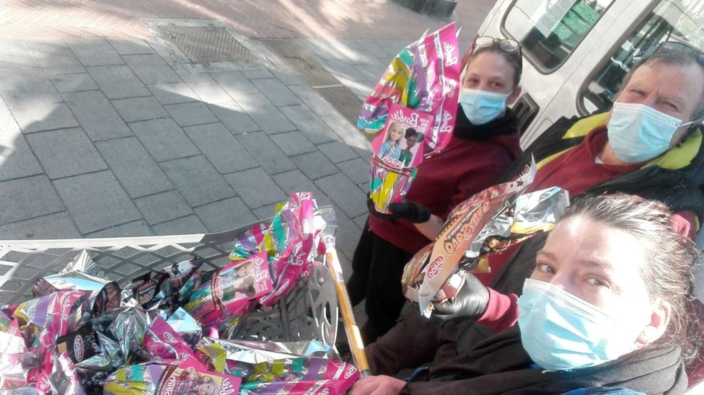 In occasione delle festività pasquali, ai generi di prima necessità si sono aggiunte anche delle uova di Pasqua da regalare ai bambini, felicissimi dell’iniziativa. Le uova raccolte, anche grazie alle donazioni ricevute, sono circa 80.