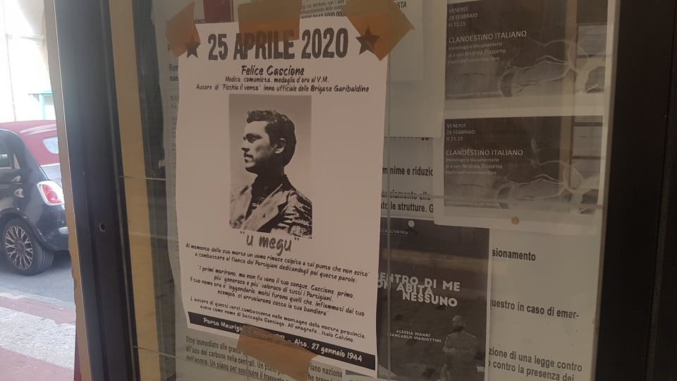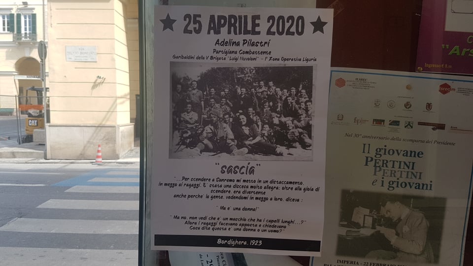 Felice Cascione (“U Megu”), Silvio Bonfante (Cion), Sergio Sabatini, Adelina Pilastri (“Sascia”). I volti dei giovani partigiani imperiesi, che hanno perso la vita per liberare l’Italia dall’oppressione nazifascista, sono comparsi questa mattina lungo i portici di via Bonfante a Oneglia, stampati su numerosi manifesti.