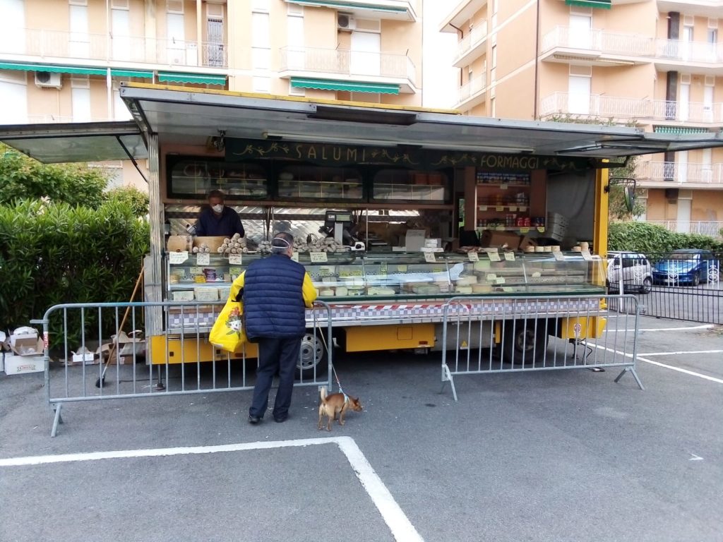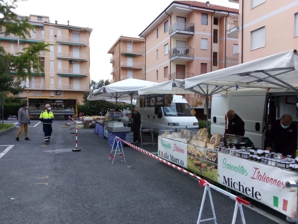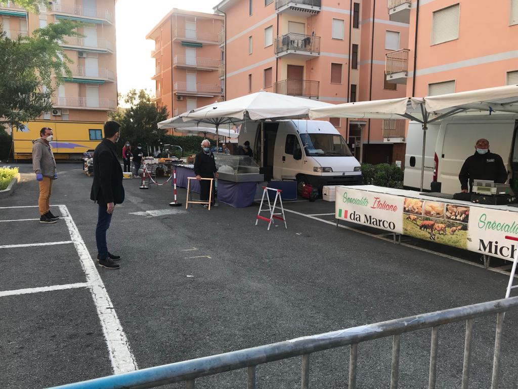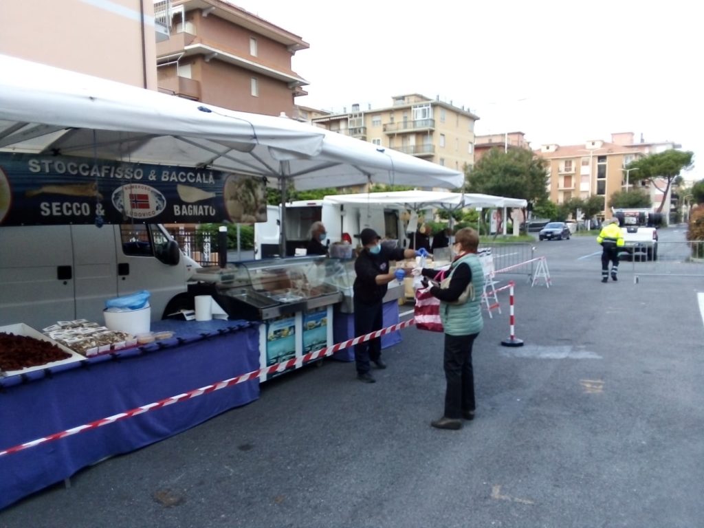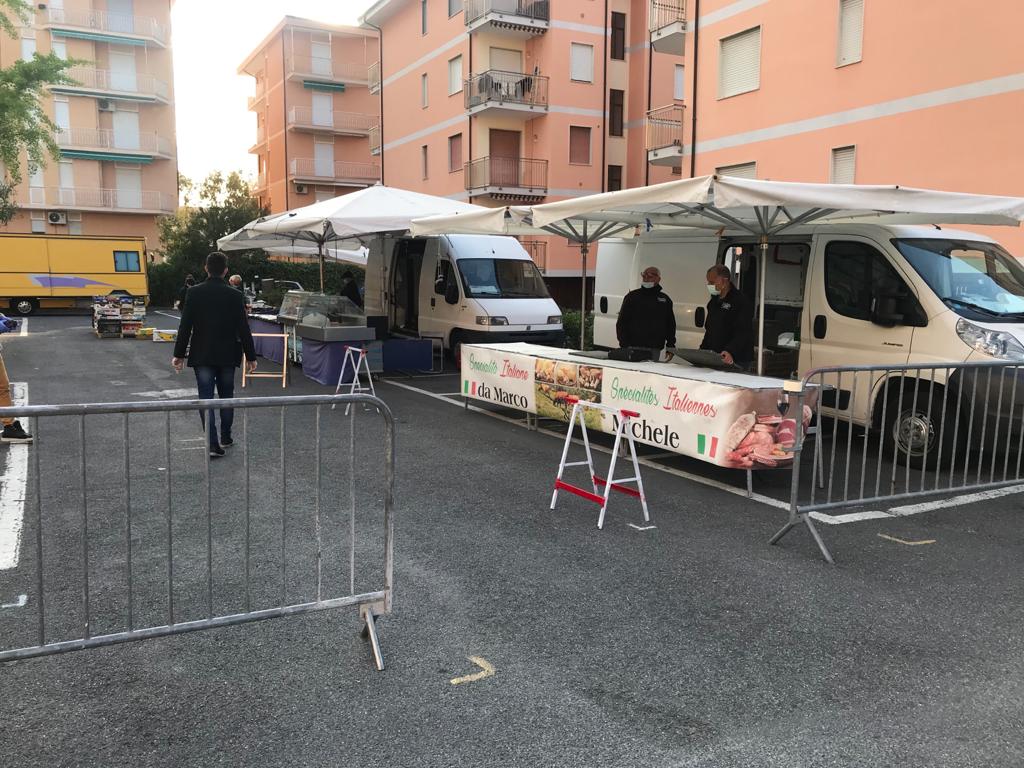 Ha riaperto questa mattina il mercato settimanale di Piazza Andrea Doria a San Bartolomeo al Mare, limitatamente ai soli banchi di generi alimentari.