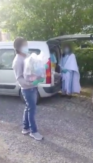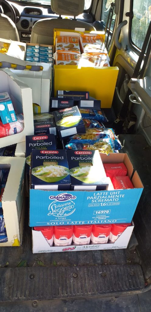 Abbiamo mantenuto le distanze e indossato le mascherine. Avevamo una lista di circa 25 persone a cui consegnare i beni. Chi prendeva la sua parte subito andava via, per evitare assembramenti.