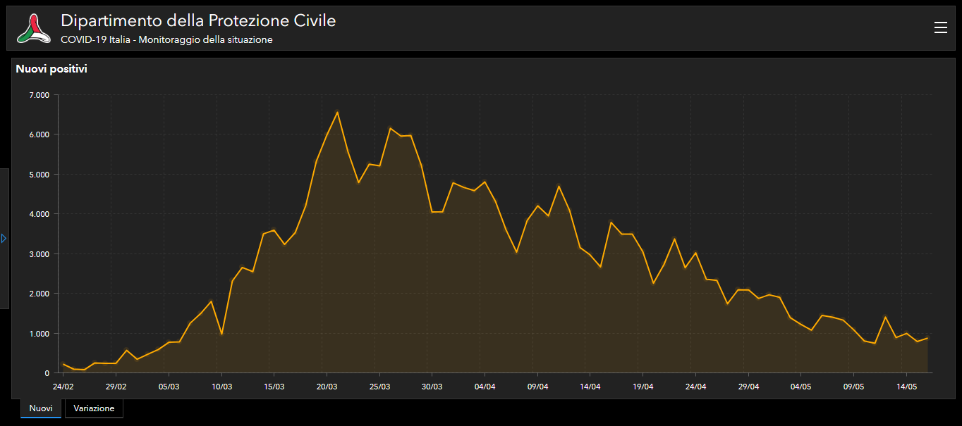 Nell’ambito del monitoraggio sanitario relativo alla diffusione del Coronavirus in Italia, a oggi, 16 maggio, il totale delle persone che hanno contratto il virus è di 224.760, con un incremento rispetto a ieri di 875 nuovi casi.