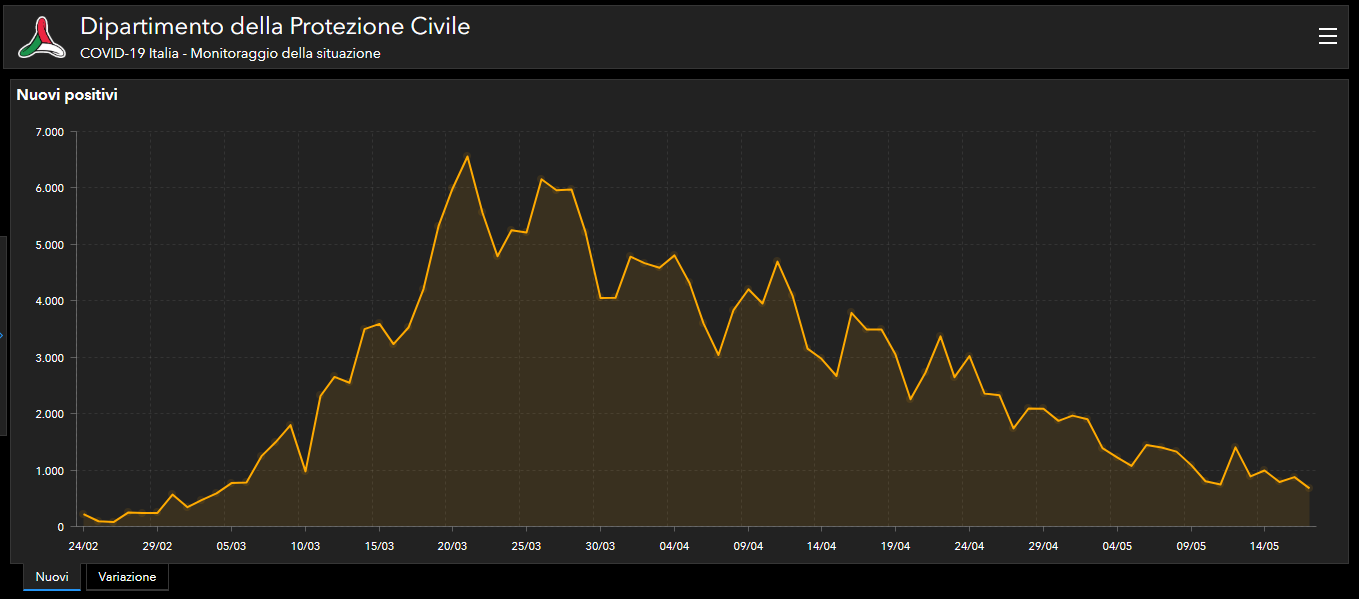 Nell’ambito del monitoraggio sanitario relativo alla diffusione del Coronavirus in Italia, a oggi, 17 maggio, il totale delle persone che hanno contratto il virus è di 225.435, con un incremento rispetto a ieri di 675 nuovi casi.
