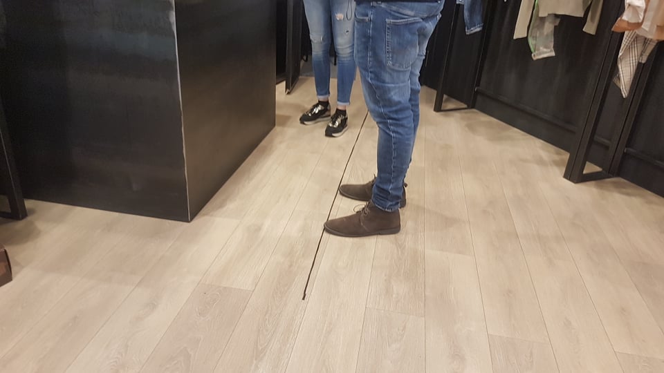 Si può entrare solo pochi alla volta e bisogna rispettare la distanza interpersonale di almeno un metro. Dalla cassa c’è una linea a terra per aiutare a rispettare la giusta distanza.