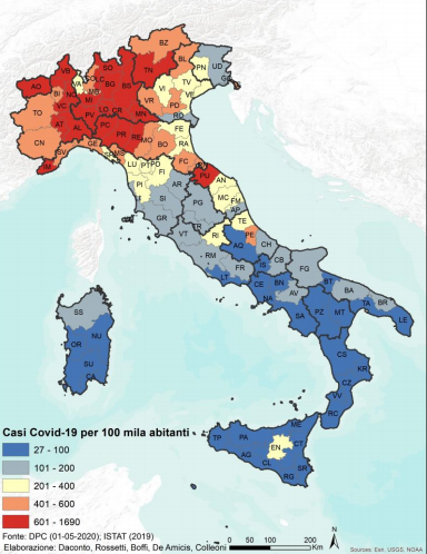 La provincia di Imperia, nel rapporto tra abitanti e contagiati, è una delle più colpite dall’epidemia di Coronavirus in Italia. Lo si evince da da uno studio condotto dall’Osservatorio socio-territoriale Covid-19, istituito da un gruppo di ricercatori di Base (Bicocca ambiente società economia) e dei dipartimenti di Sociologia e ricerca sociale e di Scienze dell’ambiente e della terra dell’Università di Milano-Bicocca.