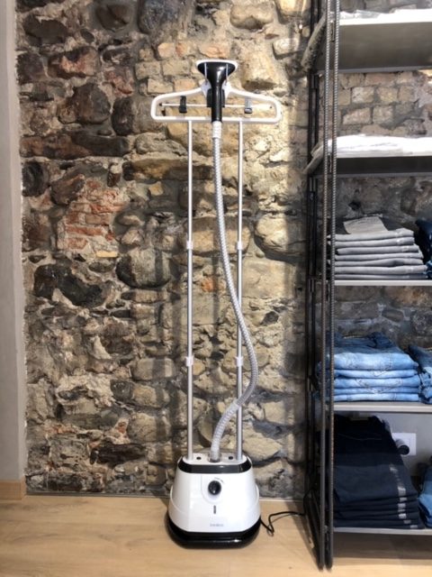 L’accesso alla sezione vendita di abbigliamento è libera (con guanti e mascherina) e regolata in base ai mq, l’abbigliamento viene sanificato con un apposito macchinario con vapore a 100°.