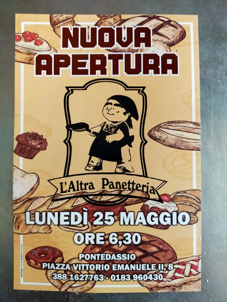 “L’Altra Panetteria” , a Pontedassio in piazza Vittorio Emanuele II 8, di Mario Ragazzo professionista dell’arte bianca, con l’aiuto della compagna Marika Ferrando (che si occuperà di tutte le monoporzioni) ha riaperto ieri 25 maggio, dopo una breve ristrutturazione